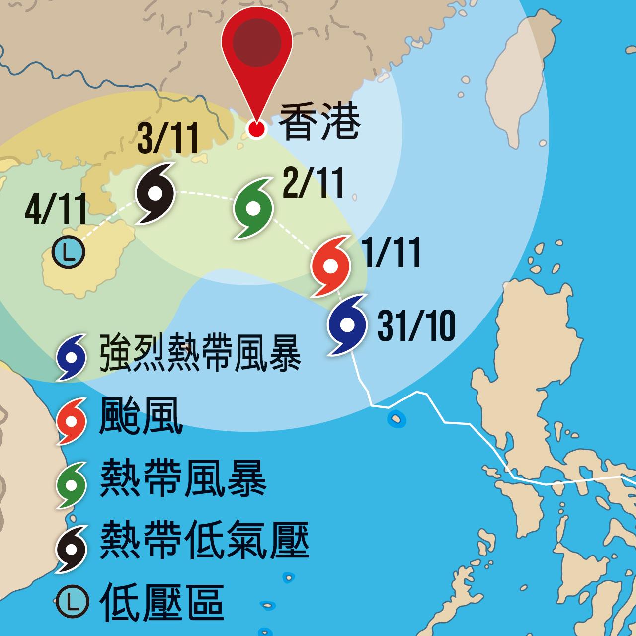 下周一已是廿四節氣的「立冬」,但香港風季未結束。強烈熱帶風暴「尼格」,逐漸逼近華南沿岸,天文台昨午4時20分改發三號風球,按天文台風暴路徑顯示,尼格今晚將「升級」為颱風,而天文台預測尼格明日(2日)稍後至周四(3日)初時相當接近珠江口一帶,其強度會逐漸減弱,但與珠江口的距離及其減弱速度仍存在相當變數,會密切監測其動向和發展,評估是否需要發出更高風暴警告。