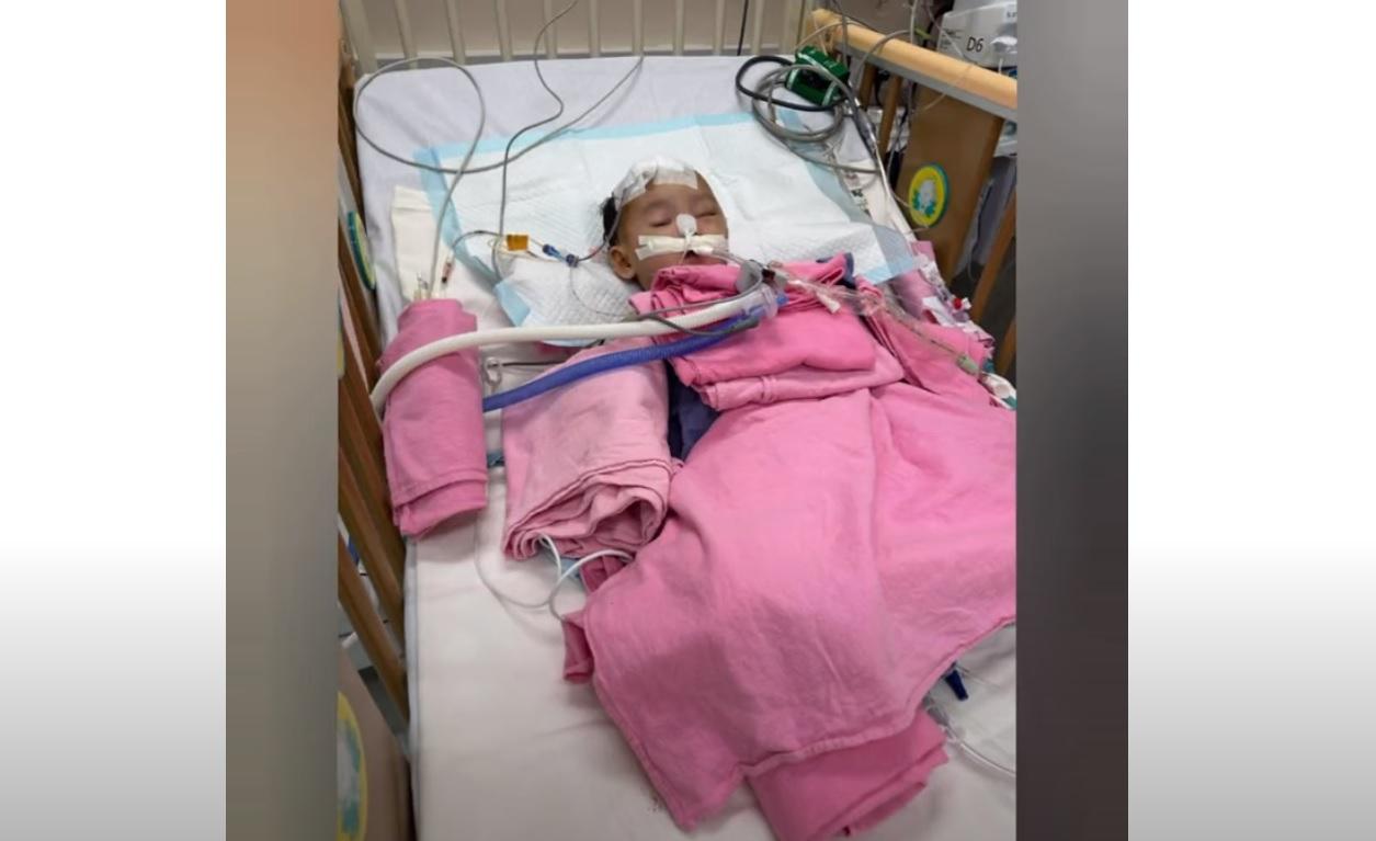 屯門虐嬰案|小雪兒腦部大面積壞死,確定其視力終身受損。(YouTube「香港關懷力量」影片截圖)