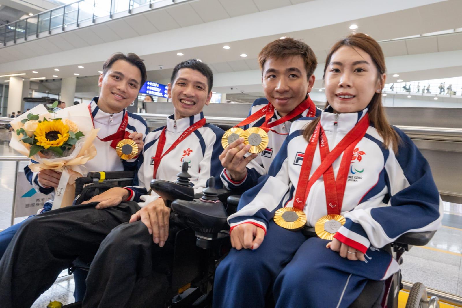 在巴黎殘奧為中國香港代表團奪得3金2銀的硬地滾球隊,早上返抵本港。 女子個人BC3級和混合雙人BC3級金牌得主何宛淇說,好開心硬地滾球隊得到好成績,特別是BC3級組別創造歷史取得獎牌。