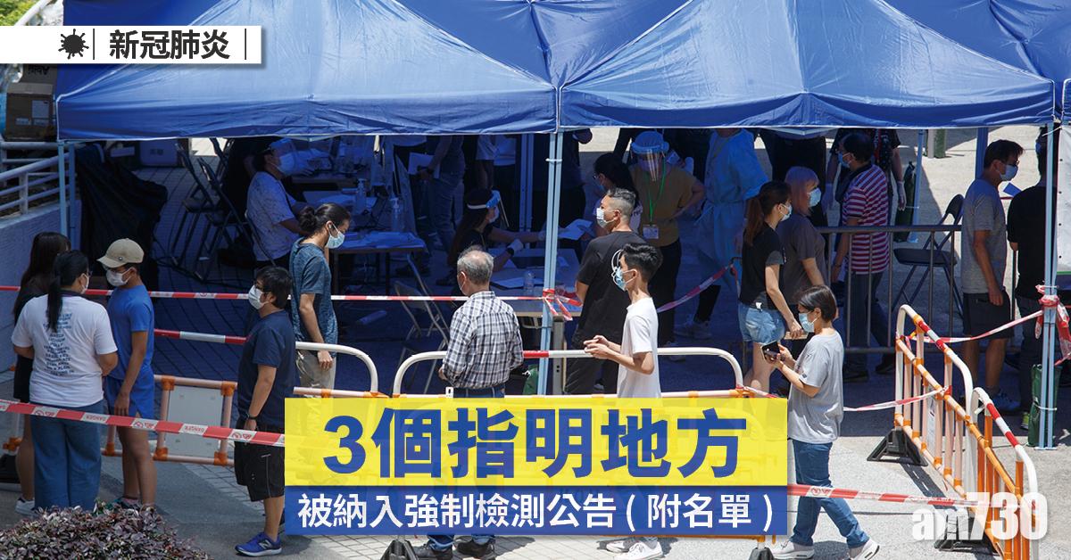 本港今日(8日)多3個地點被納入強制檢測公告,相關指明人士需要在9月10日或之前完成病毒測試。食物及衞生局表示,受檢人士若在9月6日至9月8日期間已進行檢測,會獲視為已遵從強制檢測公告的規定。
