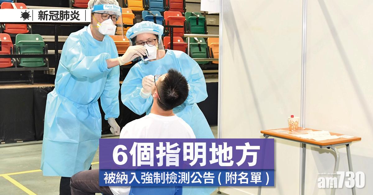 本港今日(23日)多6個地點被納入強制檢測公告。政府引用法例第599J章《預防及控制疾病 (對若干人士強制檢測) 規例》,就強制檢測公告刊憲,要求於指定期間曾身處6個地方的人士接受檢測。