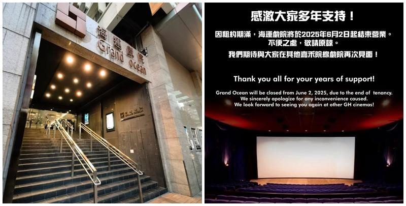 嘉禾院線宣布因租約期滿,開業56年的尖沙嘴海運戲院將於6月2日起結束營業,最後營業日為6月1日。(嘉禾院線fb)