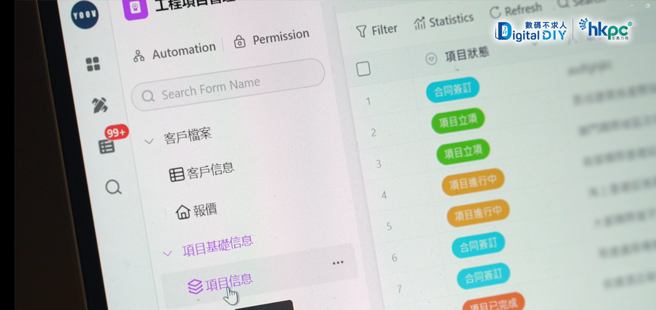 後來,文興工程得到「數碼不求人」平台的協助,聯繫合適的技術夥伴,為文興量身訂造了一套專門項目管理系統,將所有工程項目資料整合,以提升效率及準確度。系統更特別運用AI及光學字元辦識掃描技術處理標書,大幅節省時間,提升相關同事的表現。同時,管理層可隨時通過電腦或手機應用程式查看及監控相關工程數據,亦有助控制成本、作出更合理的分工安排和資源調配等,以便項目能安全、準時完成,亦可確保工程質素,從而提升客戶口碑,讓工程可以長做長有!