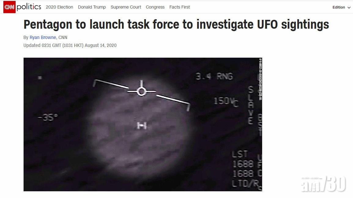 美國有線新聞網絡(CNN)報道,美國國防部準備成立一支隊伍,專責調查美軍目擊的不明飛行物體(UFO)個案,國防部暫時未有回應報道。