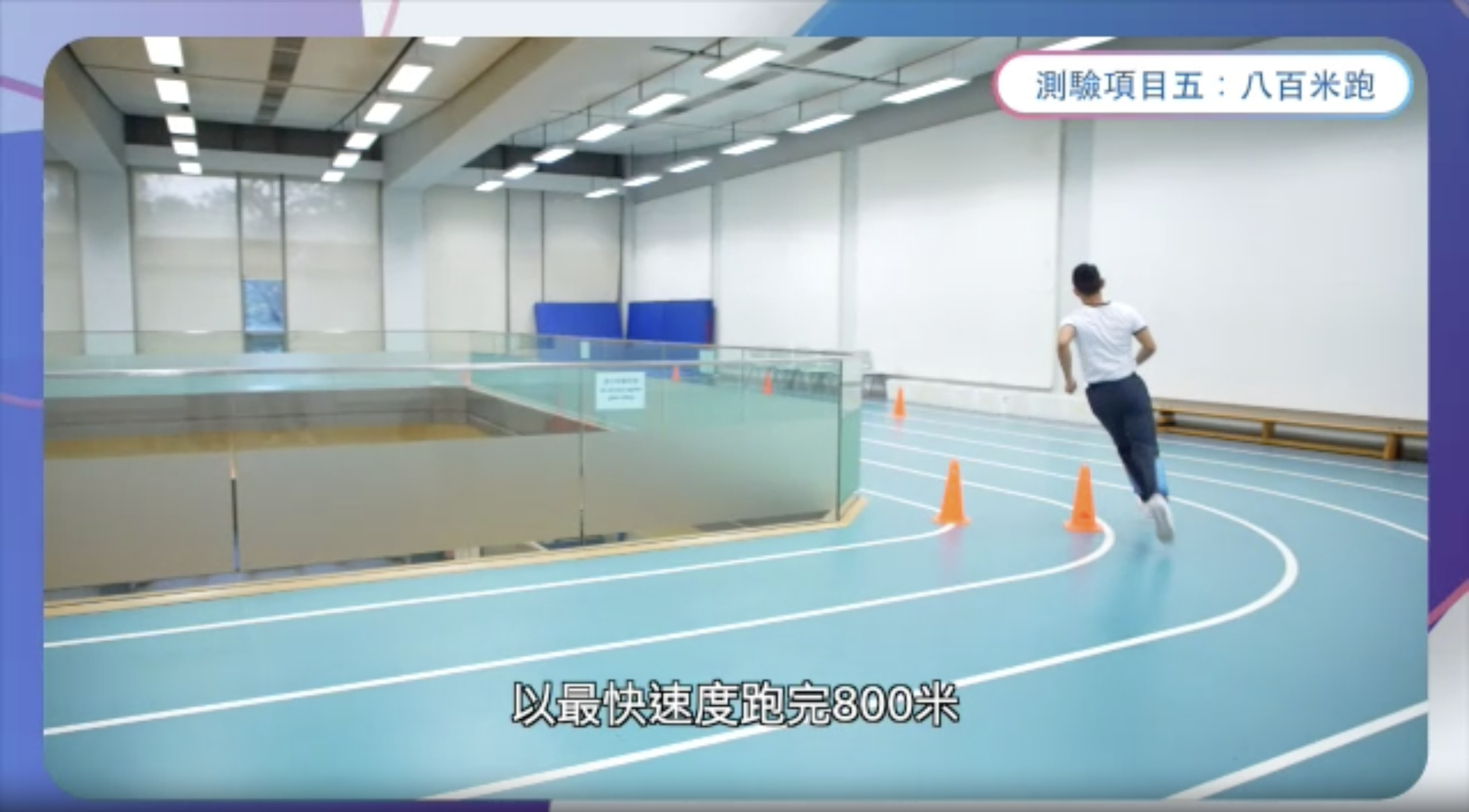 考生需在起跑線準備,聽到起跑指示時開始,以最快速度完成800米路程。完成時間越短,得分越高。考生最慢要在5分08內完成,方得一分