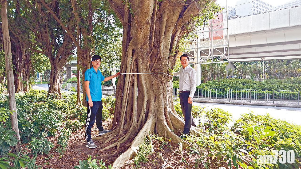 最近政府移除2棵細葉榕古樹惹爭議,原來古樹除了具歷史價值外,其在改善空氣污染方面亦起了很大作用,THEi畢業生、23歲的胡竣軒(圖左)於其調查發現約480棵古樹能為本港減少空氣污染物逾1,300公斤,每年大概可節省35萬元環保開支。