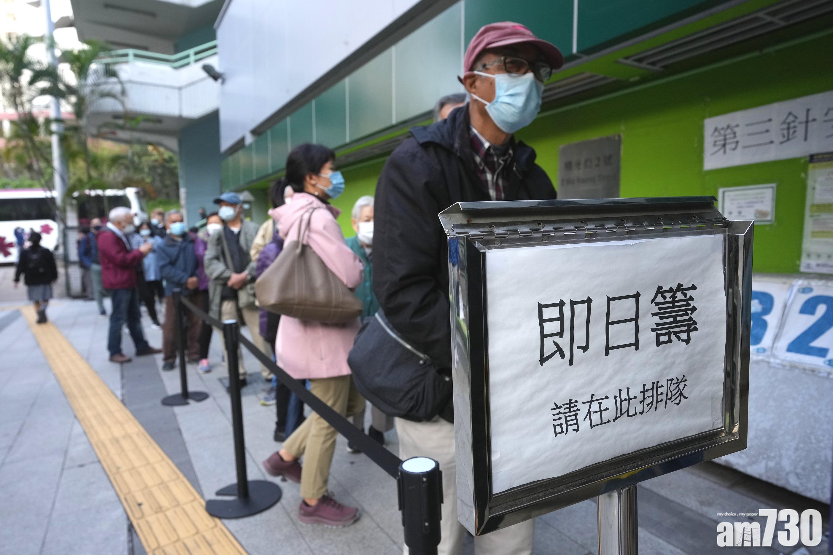 在觀塘曉光街社區疫苗接種中心,有數十名長者清晨7時許已到場排隊取籌。(陳奕釗攝)