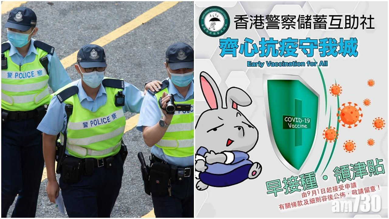 俗稱「遮仔會」的警方儲蓄互助社,近日推出接種疫苗津貼,鼓勵警員打針。(左:資料圖片;右:警方儲蓄互助社)