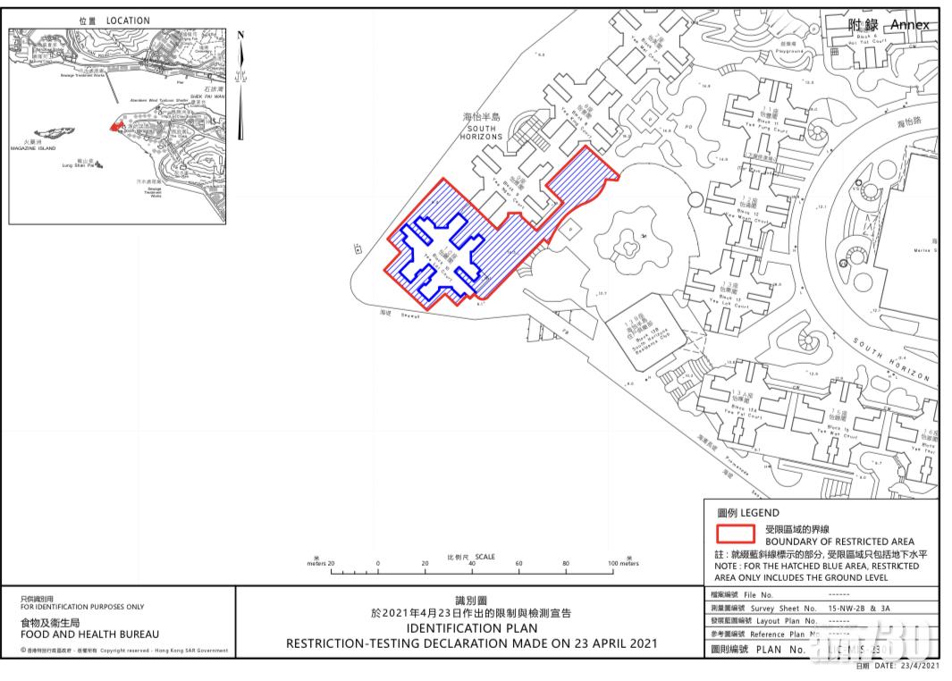 政府今日引用《預防及控制疾病(對若干人士強制檢測)規例》(第599J章),作出限制與檢測宣告,自下午8時30分起限制在鴨脷洲指明「受限區域」,即鴨脷洲海怡路10號海怡半島第10座(怡麗閣)內的人士,須留在其處所並接受強制檢測。受檢人士須在其處所等候,直至區內所有已識別的受檢人士完成檢測,而相關檢測結果亦已獲大致確定,方可離開其處所。政府目標是在明日上午約8時左右完成此行動,以達致「同心抗疫,小區『清零』」的目標。
