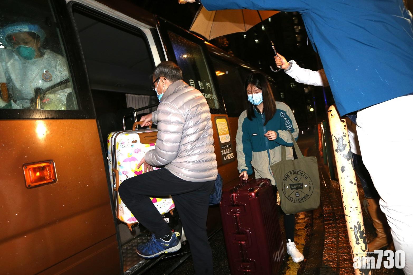 【21:10更新】大埔太和邨愛和樓14樓的居民,晚上7時許開始陸續登上旅遊巴往檢疫。