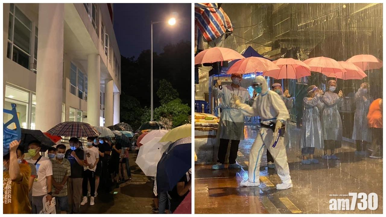 澳門多個檢測站大排長龍,個別檢測站約有1,500人排隊。全澳檢測站通宵運作,人龍一直未消散,多區居民今日凌晨冒雨排長龍等候接受檢測,秩序大致良好。有民眾反映,個別檢測站人手不足,只有1名醫護負責採樣。應變協調中心呼籲,居民在進行全民核酸檢測前,必須先在網上預約,並按預約時間前往檢測,避免人群聚集,又指檢測進度理想,市民無需心急,只要在3天期限內完成就可。