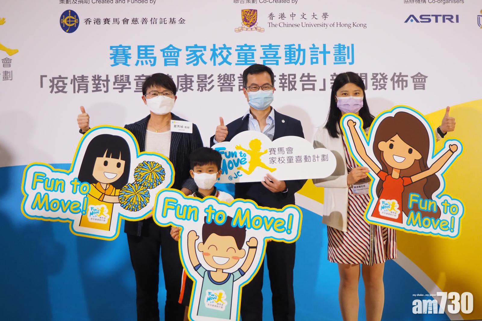 疫情大改生活模式,賽馬會慈善信託基金旗下「賽馬會家校喜動計劃」委託中大教育學院,於今年2月訪問825名參與計劃的小學家長,發現63%家長稱子女在疫情期間體重上升,其中11%更增磅逾3公斤。專家認為情況值得關注,建議家長應陪同子女在家「放下電」,做適量運動。