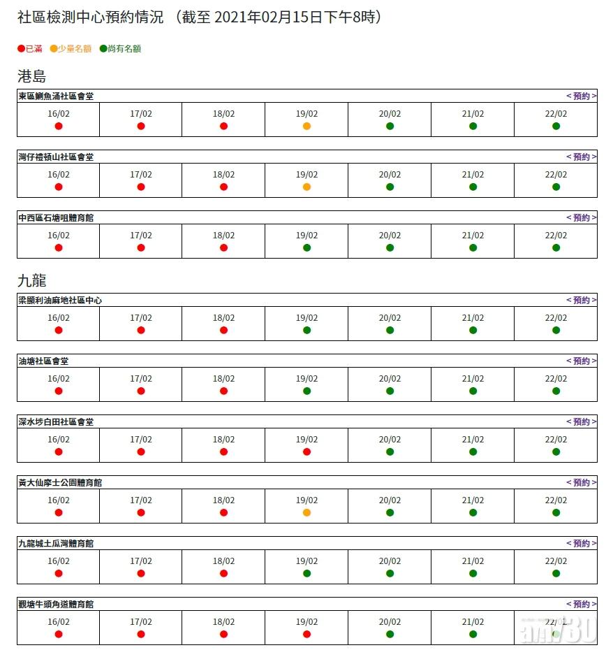 返回 本地 出版:2021-Feb-16 08:55 更新:2021-Feb-16 08:55 新冠肺炎|19間社區檢測中心周四前均滿額 分享: 19間社區檢測中心周四前均滿額。(社區檢測中心網頁) 社區檢測中心網頁顯示,全港19間社區檢測中心由今日至周四的預約名額,全部已爆滿。只有荔景社區會堂、坑口社區會堂和沙田馬鞍山體育館共3間社區檢測中心,在周四(年初七)尚有少量名額可預約。 另外,食物及衞生局表示,在農曆年初一至年初三,共有67,120人在全港19間社區檢測中心接受自願或免費檢測。 ADVERTISEMENT 立即更新 /下載AM730手機APP 體驗升級功能