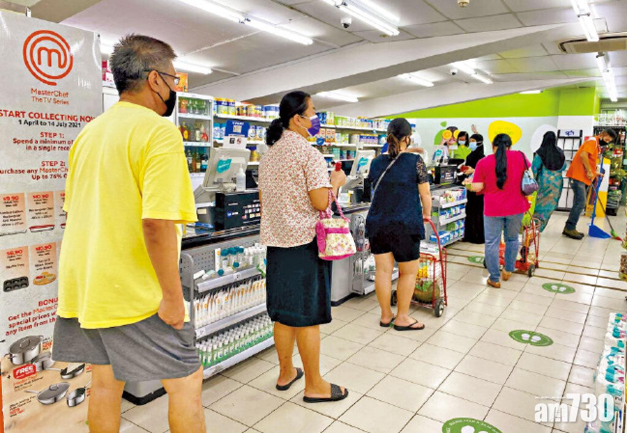 新加坡民眾在超市購買廁紙等必需品。(路透社)