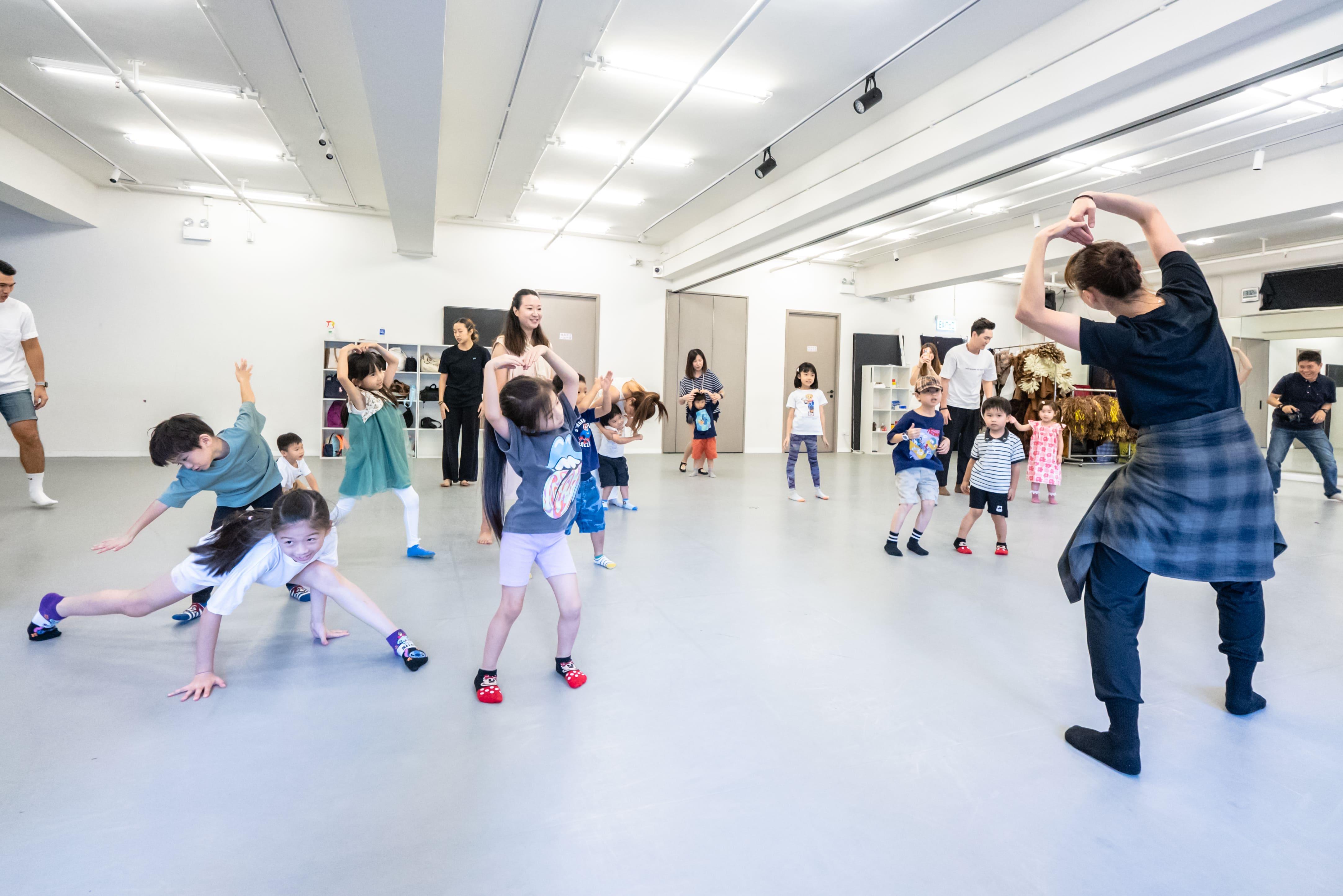 早前舞團演出《屎撈人 - 愛便愛愛》進行的親子當代舞蹈體驗堂班,一眾未曾接觸當代舞的小朋友初次體驗時表現投入,沒有難度。(圖片由城市當代舞蹈團提供)
