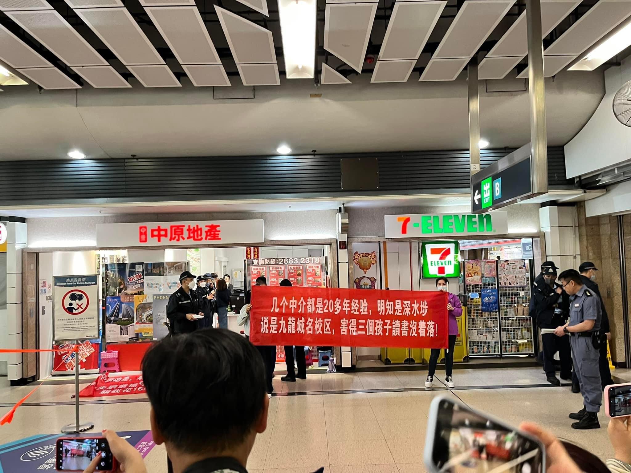 周五(17日)有自稱大陸新移民的業主,到中原地產粉嶺一分行控訴抗議,拍自己本來想買九龍城名校區的住宅,最終買下的竟然是深水埗樓盤,聲稱遭誤導而「害得三個孩子讀書沒著落」而拉橫額抗爭。中原回應傳媒查詢表示,沒證據顯示指控屬實。