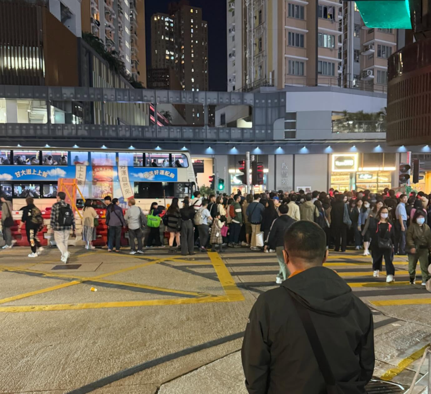 社交平台流傳多條影片,指新蒲崗彩虹道近大有街、啟鑽苑對出的行人過路處,近日因房屋署擴闊道路工程設置水馬,導致安全島空間大幅縮窄變「樽頸」位,下班繁忙時段人流擠擁過馬路,但因兩邊位置擺滿水馬令安全島空間變得狹窄,行人難以及時穿過需緩慢前行,有人更被逼出馬路,場面被指如行年宵市場,更有途人形容:「好多人,我以為自己要去倒數」。運輸署回應已與相關部門協調,敦促承辦商調整水馬範圍,並將於繁忙時段延長行人綠燈時間。
