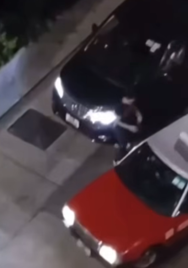 該段近兩分鐘影片於附近大廈上方住戶拍攝,可見七人車在中線及右線之間被的士攔住去路,七人車倒後並嘗試從其他行車線避開未能成功,隨後轉到右線,的士亦急轉「閘車」,兩車險發生碰撞。此時七人車男司機怒罵「X你XXX」,下車走向的士,情緒激動地拍打的士車窗及大罵「X你XX,閘X我」,又用力猛推的士車頭,後來更疑曾伸手入司機位,期間有人稱「報咗警」。