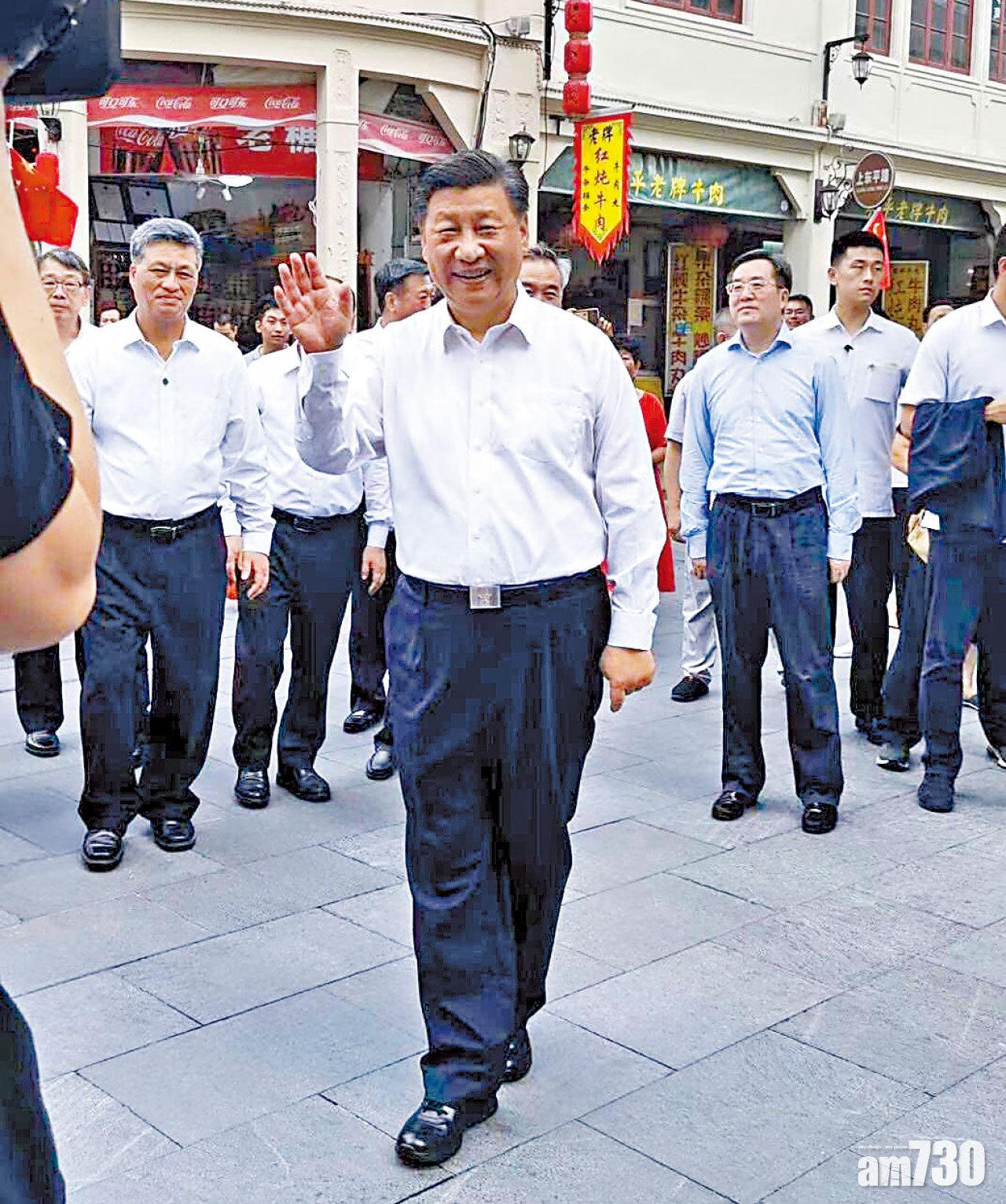 習近平向圍觀街坊揮手。 (互聯網)