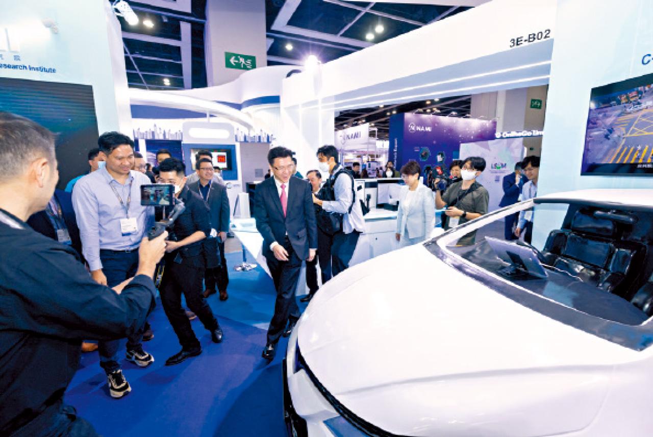 創科局局長孫東教授參觀應科院展區的車聯網演示,認為對香港發展智慧出行有信心,可接入國家十四五規劃布局。