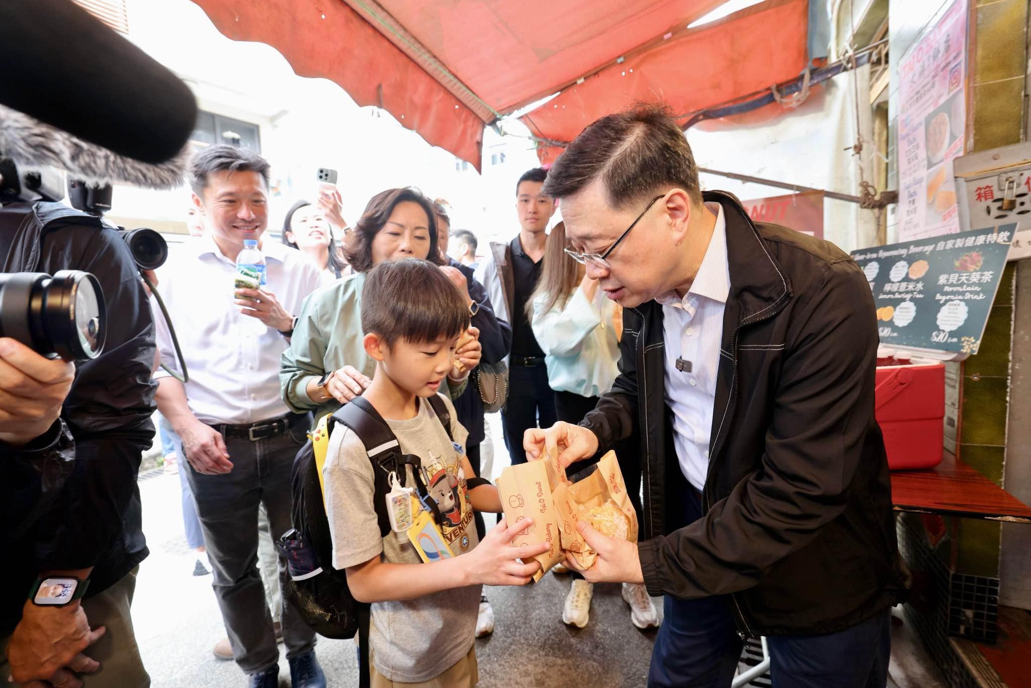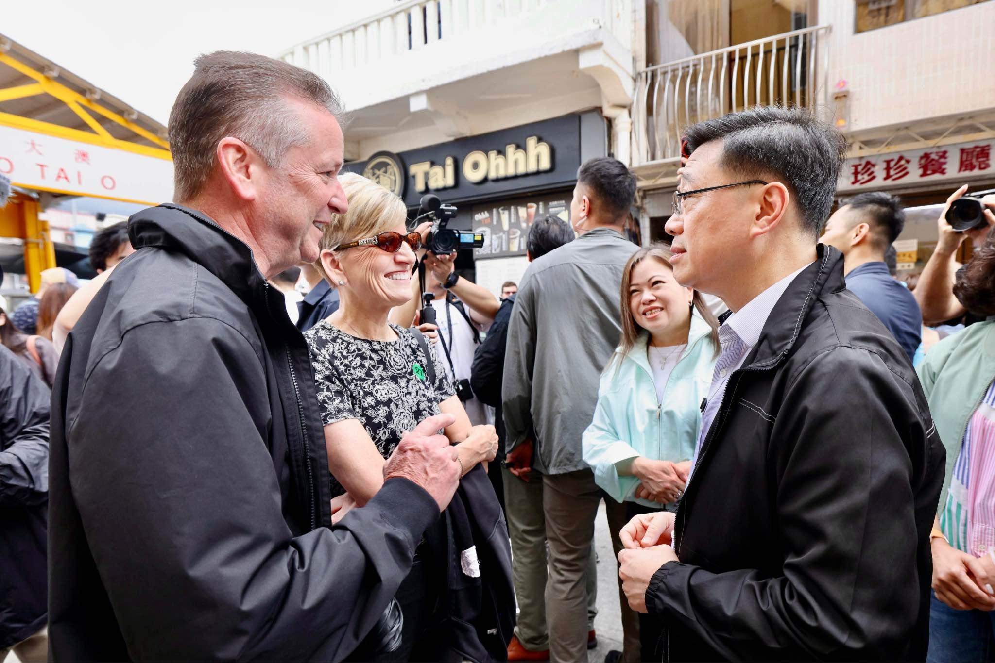 行政長官李家超昨日在復活節長假期首日,到大澳落區視察。李家超與街坊及遊客聊天,指會繼續發展不同的旅遊資源,以吸引更多海內外旅客前來香港,感受香港與別不同的風情風貌。