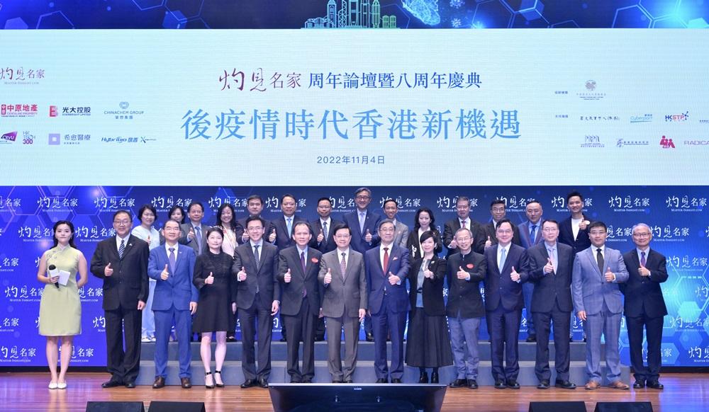 特首李家超等今日出席灼見名家周年論壇暨八周年慶典。(政府新聞處圖)