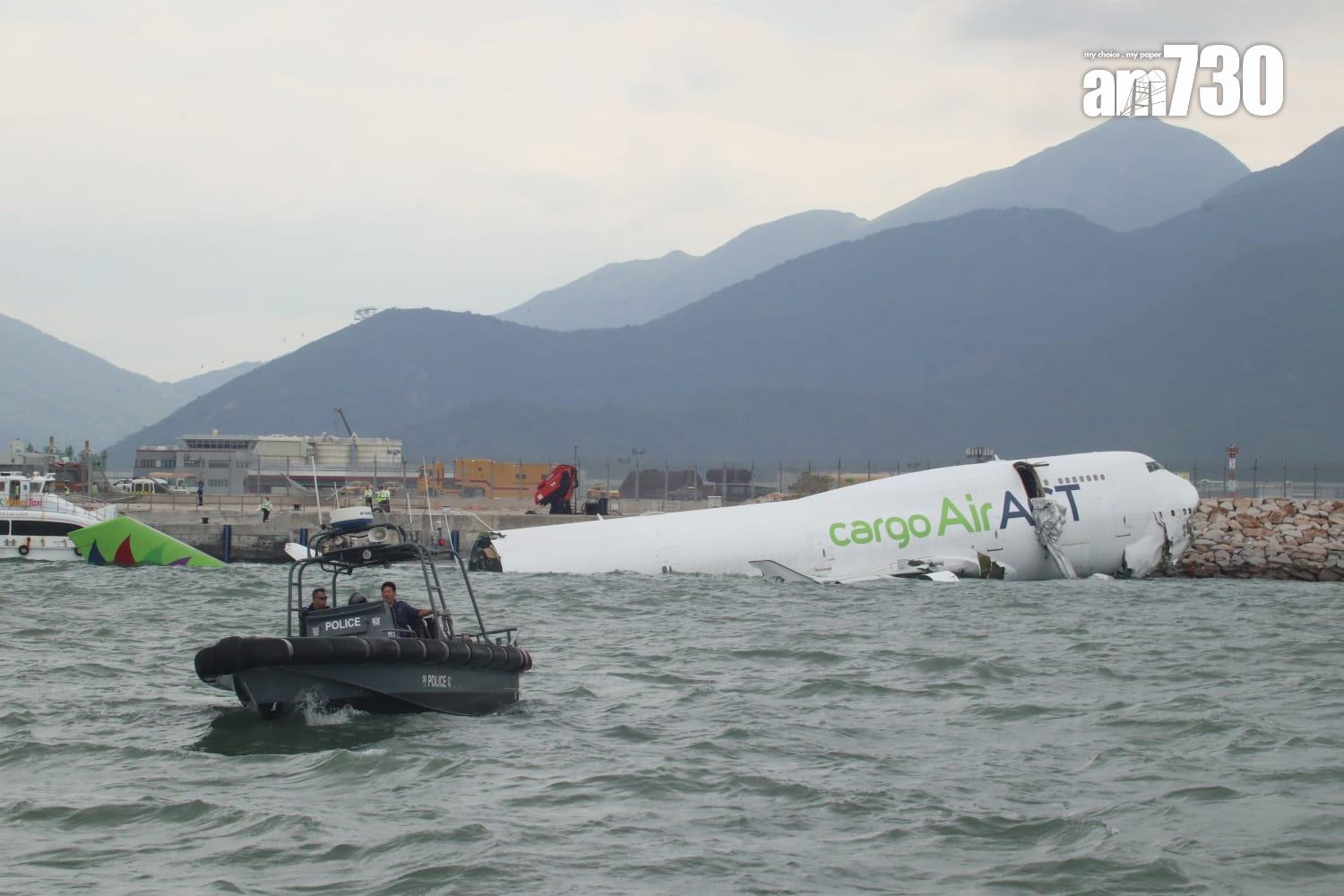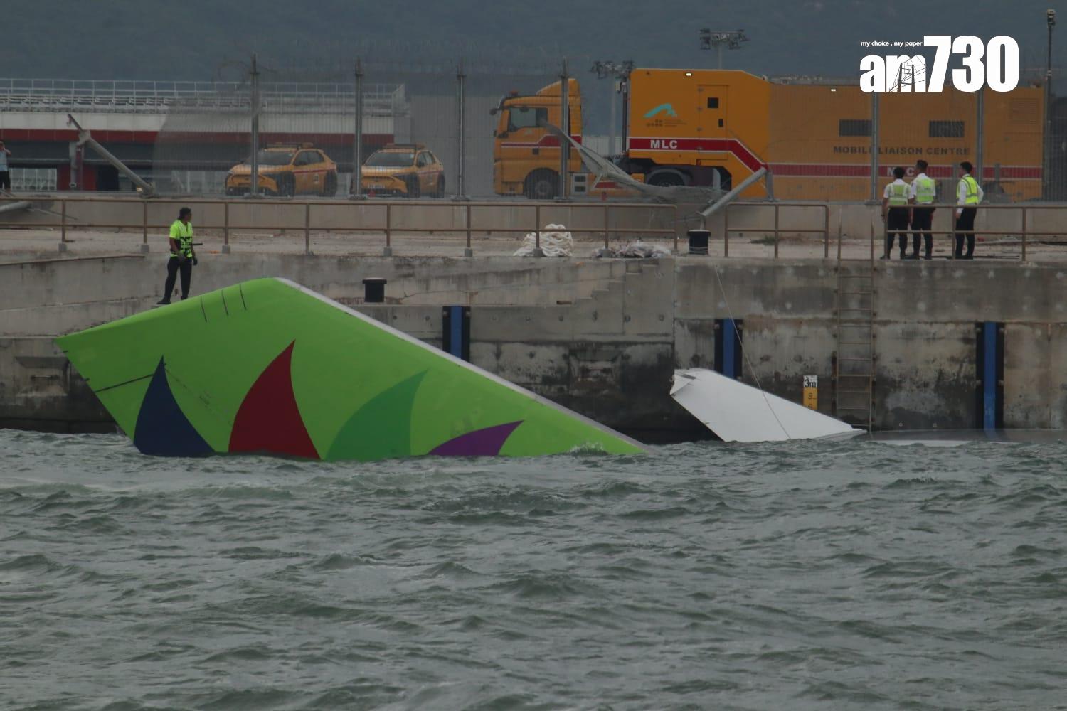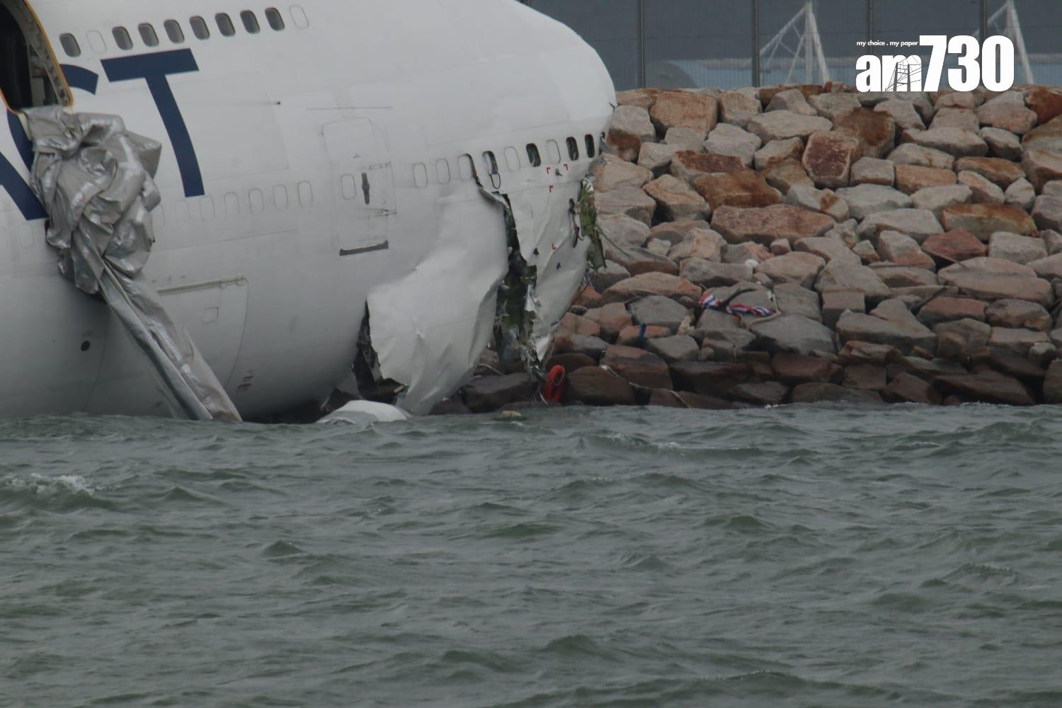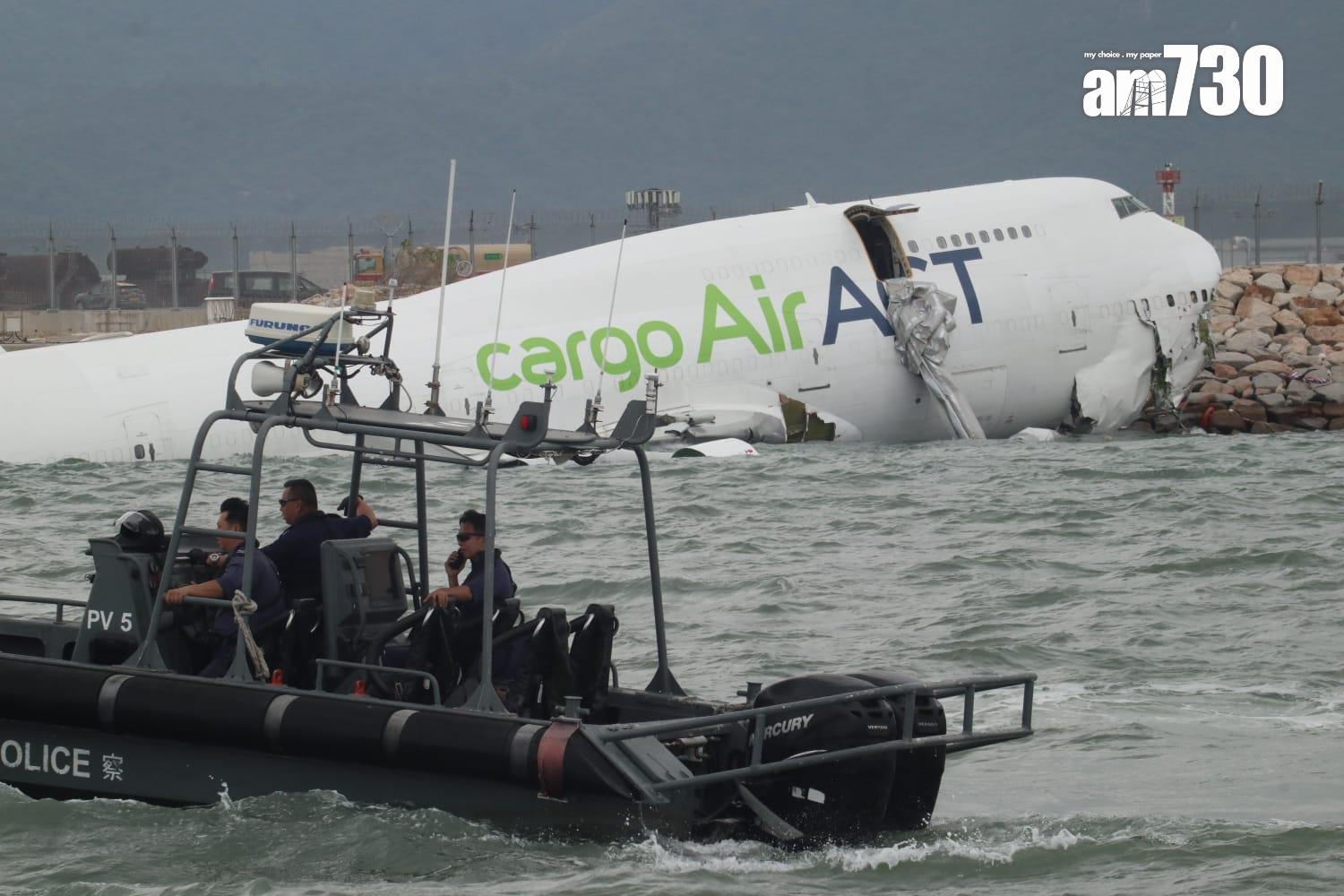 杜拜抵港貨機衝出跑道半機身墮海,地勤車被撞落海,兩男救起不治。(X)