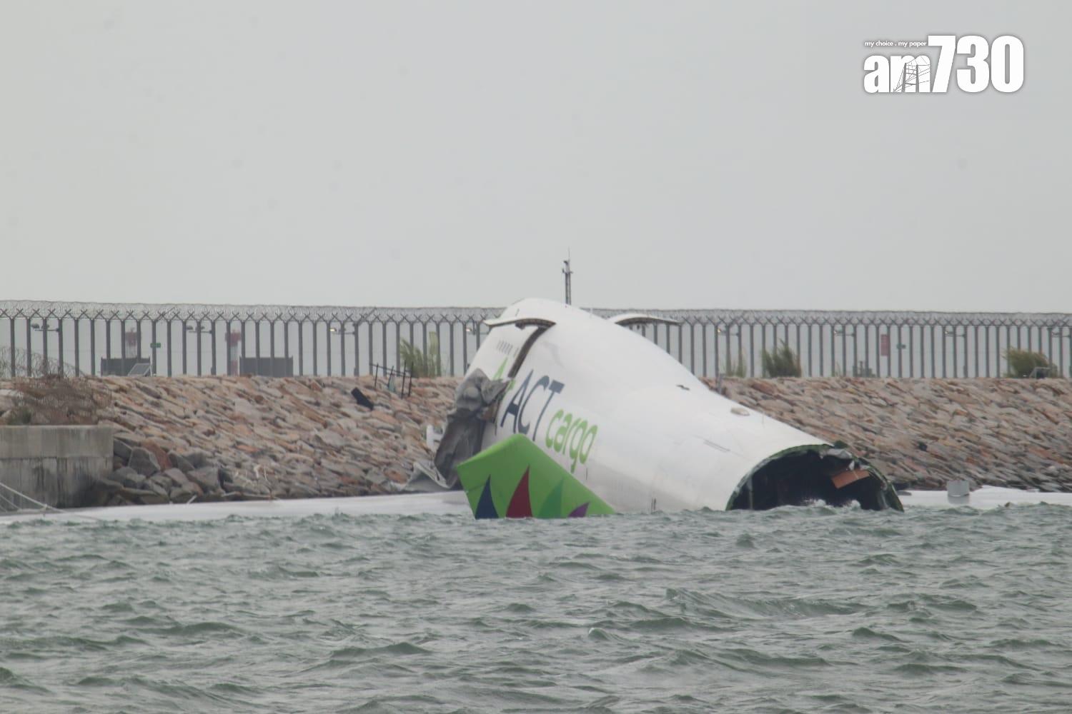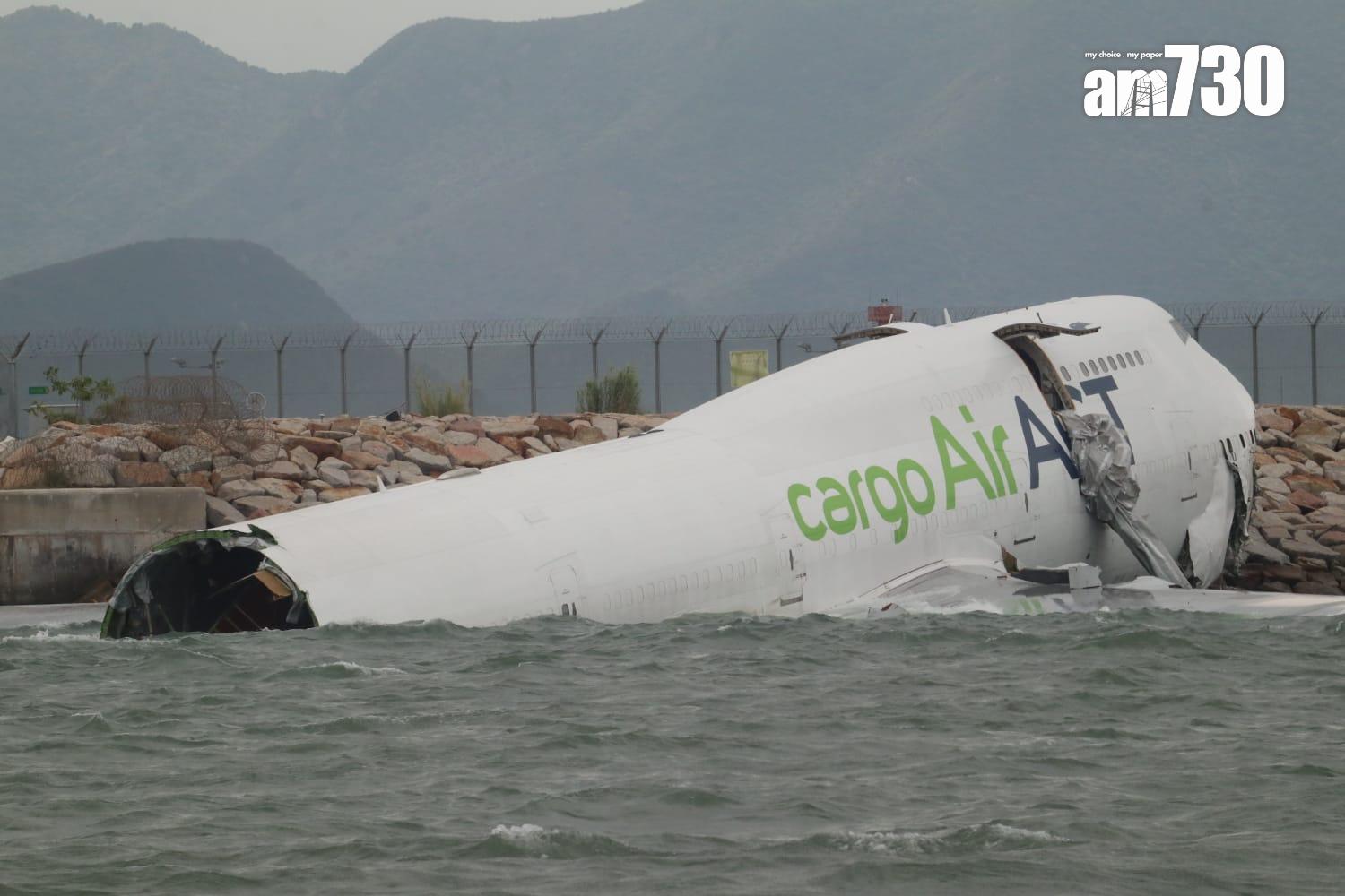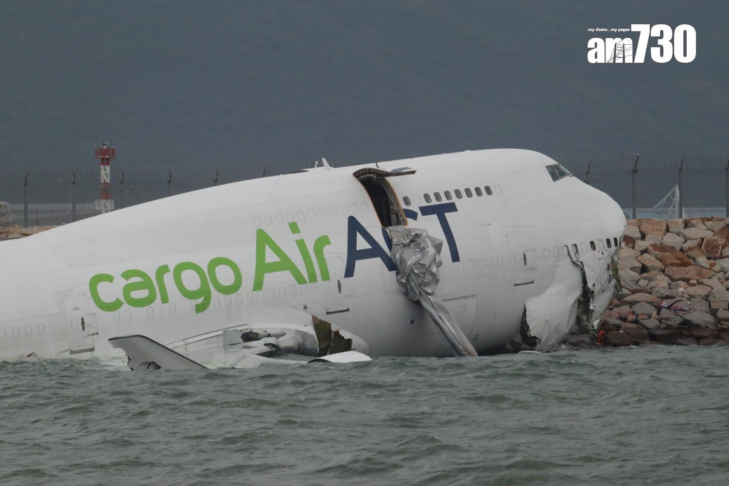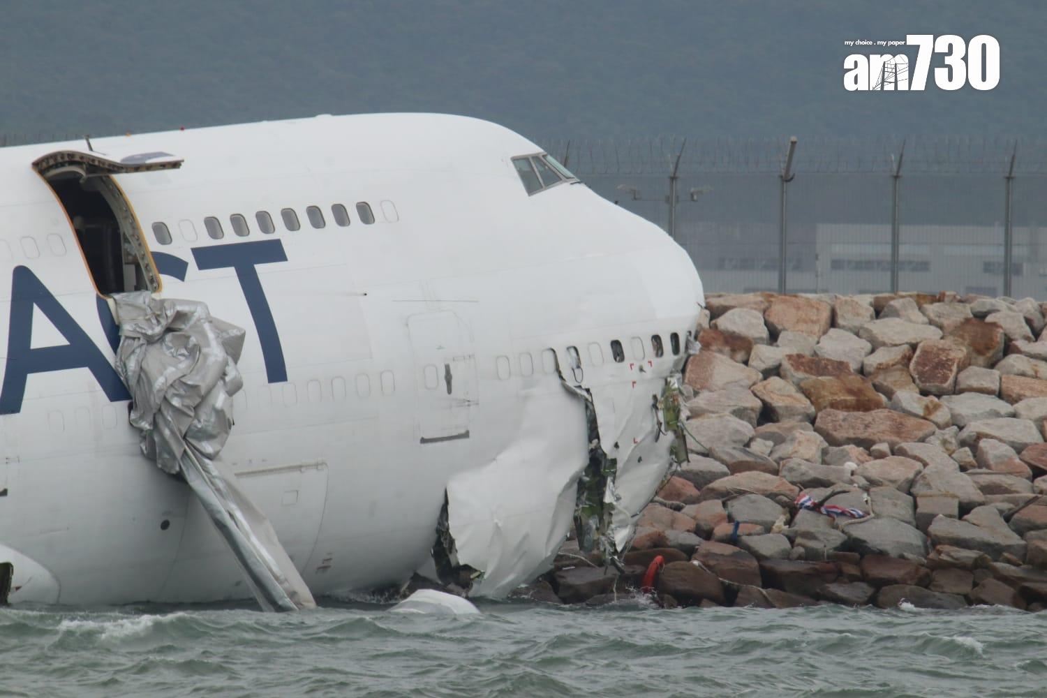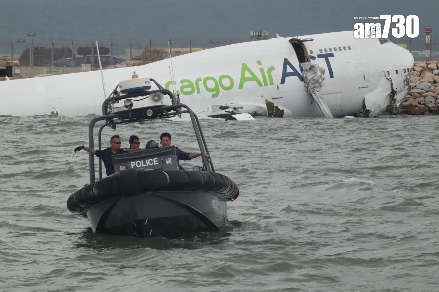 杜拜抵港貨機衝出跑道半機身墮海,地勤車被撞落海,兩男救起不治。(X)