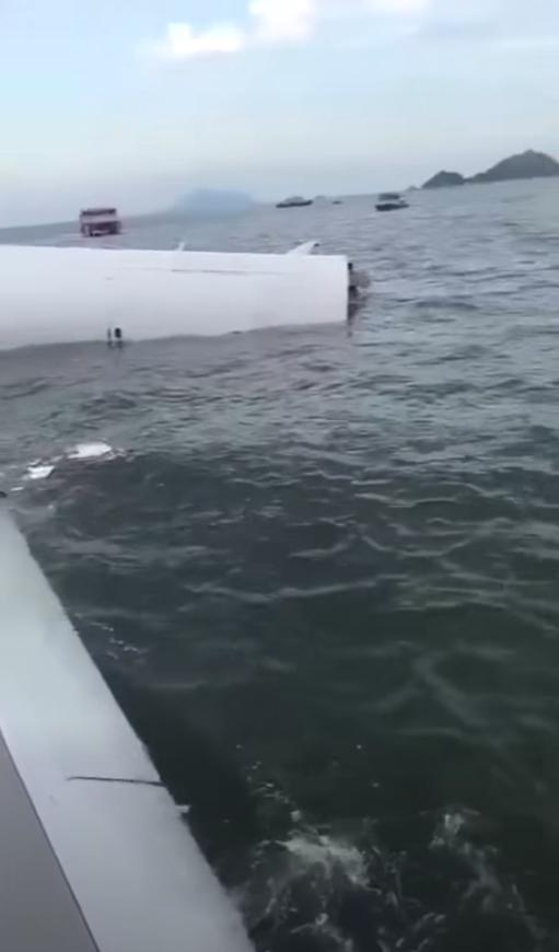 網上影片顯示,涉事貨機機頭擱在岸邊,機尾折斷,部分落入海中,有機件雜物在海面漂浮;貨機緊急救生梯已彈出,相信是機上4名機組人員逃生出口。