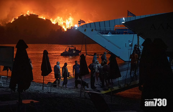 希臘遇上30年來最嚴重熱浪,部分地區氣溫高達攝氏47度,航拍機的熱能攝錄機更錄得首都雅典市中心的氣溫達55度。熱浪引發的山火燒足6日仍未撲熄,南部East Mani副市長Eleni Drakoulakou形容今次山火如聖經裡的災難。山火迄今造成最少2人死亡,另20人送院治療,數以千計居民須疏散。