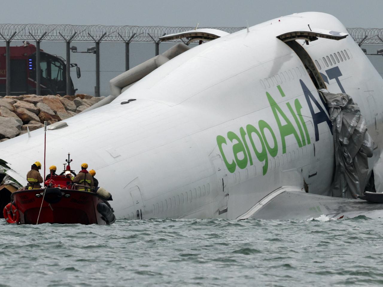 一架貨機日前在香港國際機場衝出跑道墮海。(路透社資料圖片)