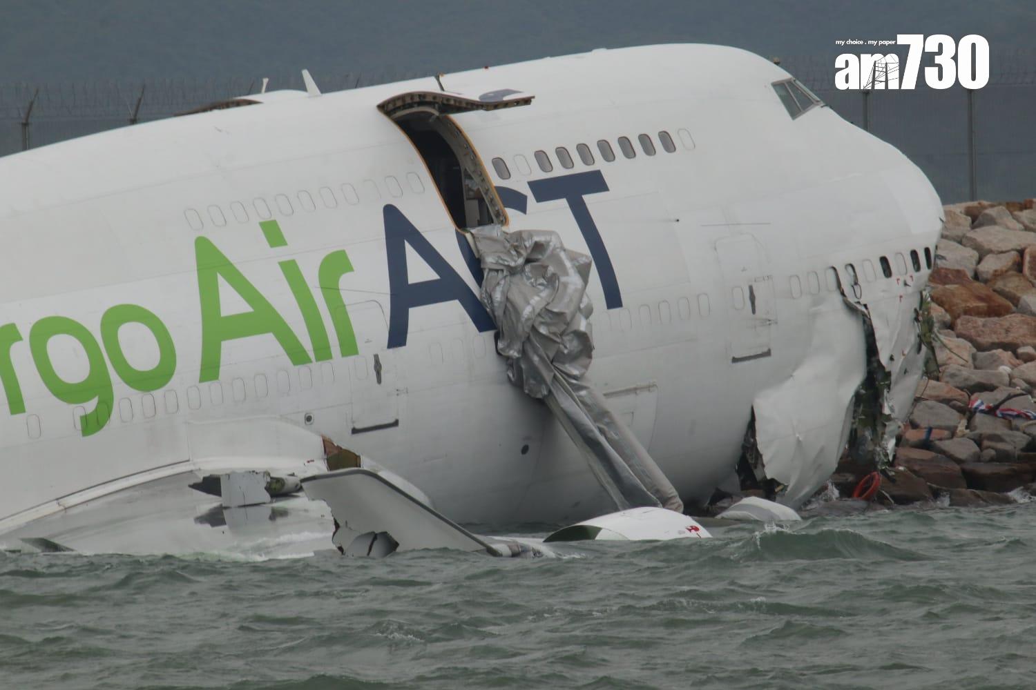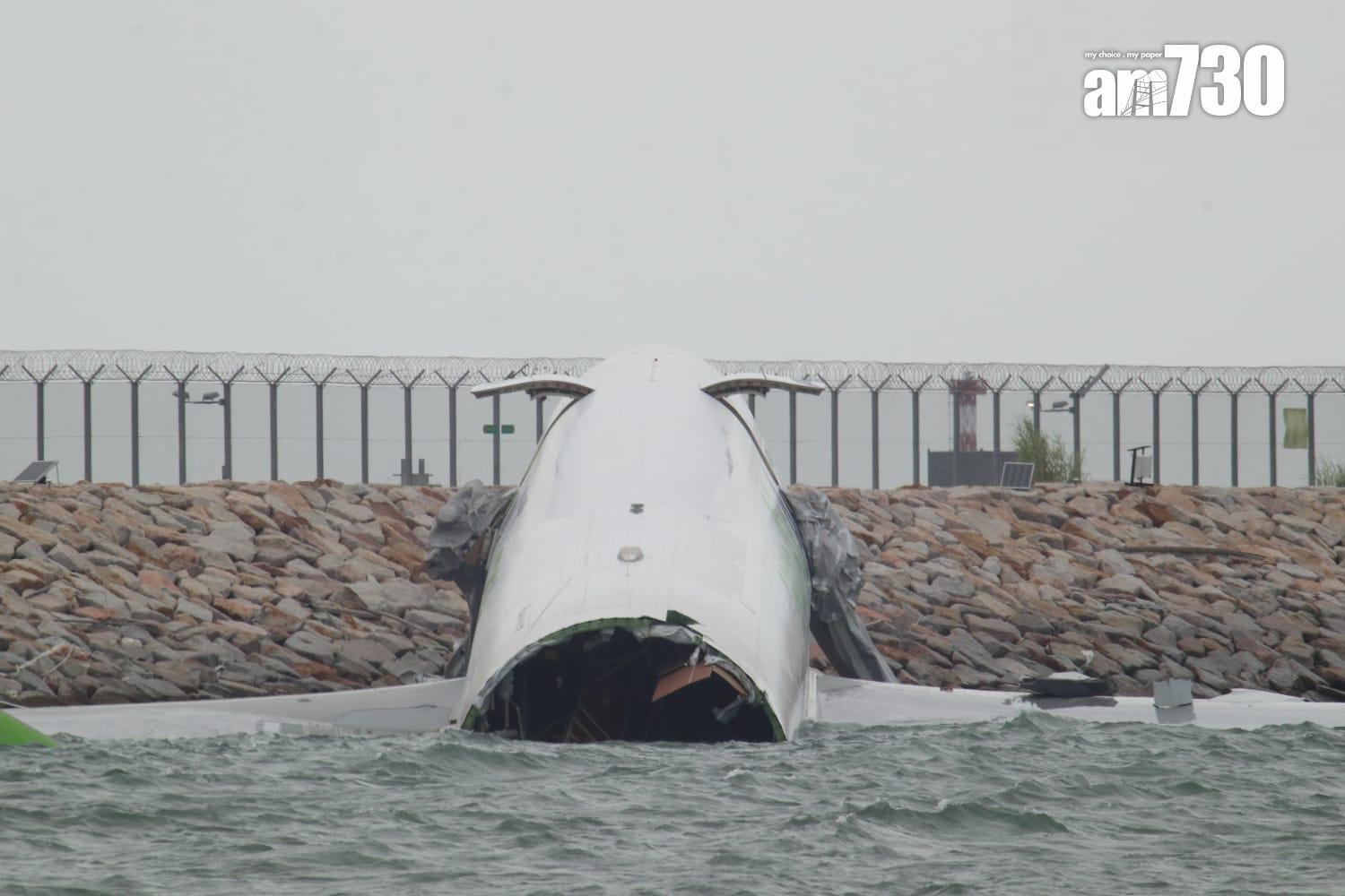 杜拜抵港貨機衝出跑道半機身墮海,地勤車被撞落海,兩男救起不治。(X)