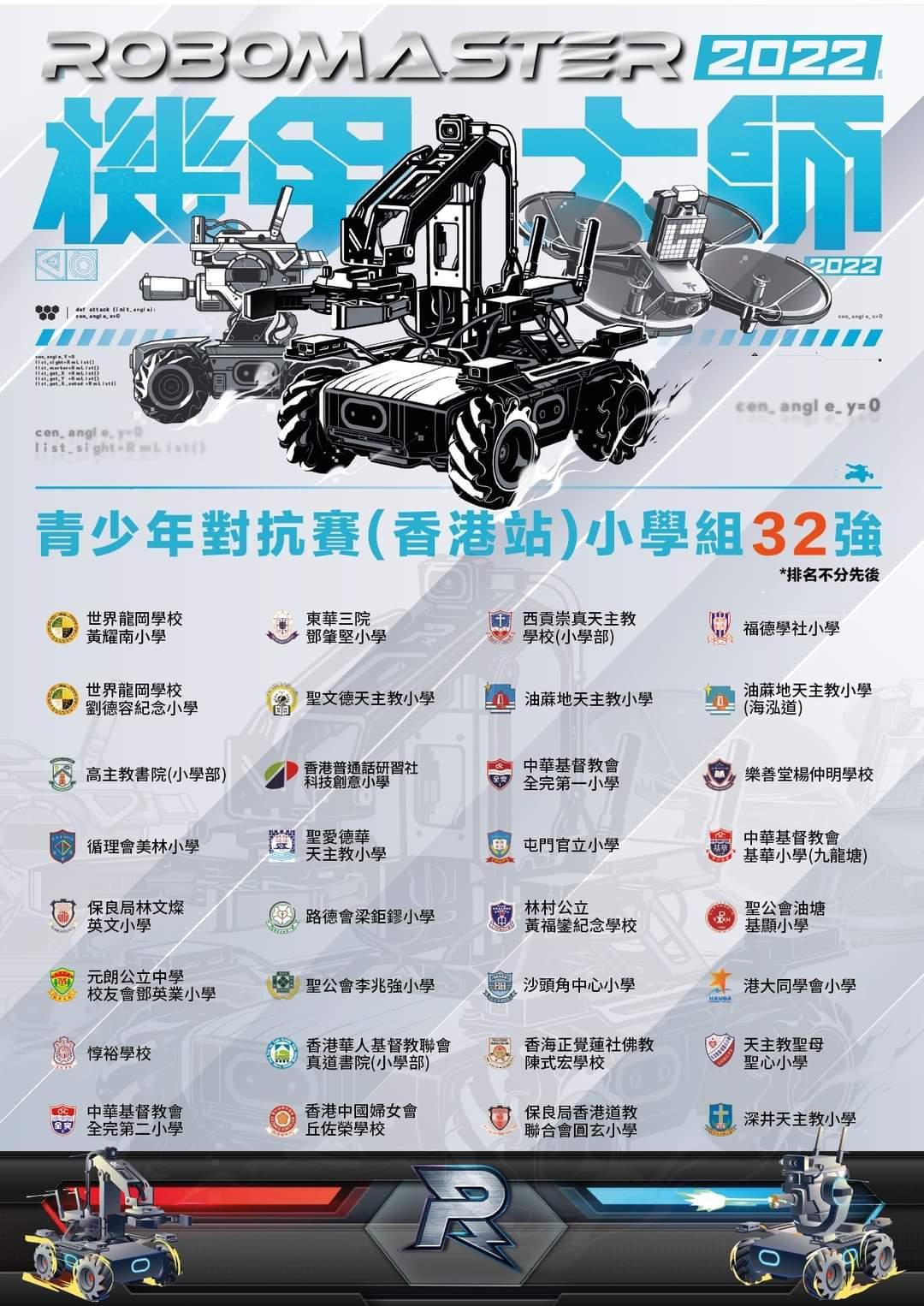 今年機甲大師青少年對抗賽(香港站)由香港深圳社團總會、大灣區共同家園青年公益基金、香港中華教育基金、大疆教育聯合主辦、香港電腦教育學會學界主辦、數碼港合辦,政府資訊科技總監辦公室指導,並由數碼港社群成員ASK Idea (Hong Kong) Limited獨家承辦。此外,5月期間機甲大師總區於新加坡舉行了2022夏季國際RoboMaster 遠端邀請賽,由仁愛堂田家炳中學及聖文德天主教小學代表香港出戰,於全球中小學混戰中,仁愛堂田家炳中學最終擊敗澳洲、星加坡、南韓等地區精英,奪得全球亞軍,為港爭光!