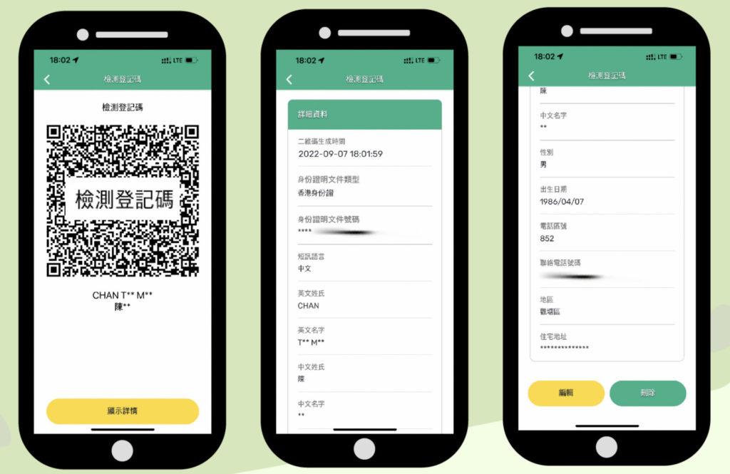完成登記後,「安心出行」便會自動生成檢測登記碼,巿民每次檢測時打開程式便可以向工作人員出示,不用工作人員人手輸入資料。。如需更新個人資料,請按編輯。