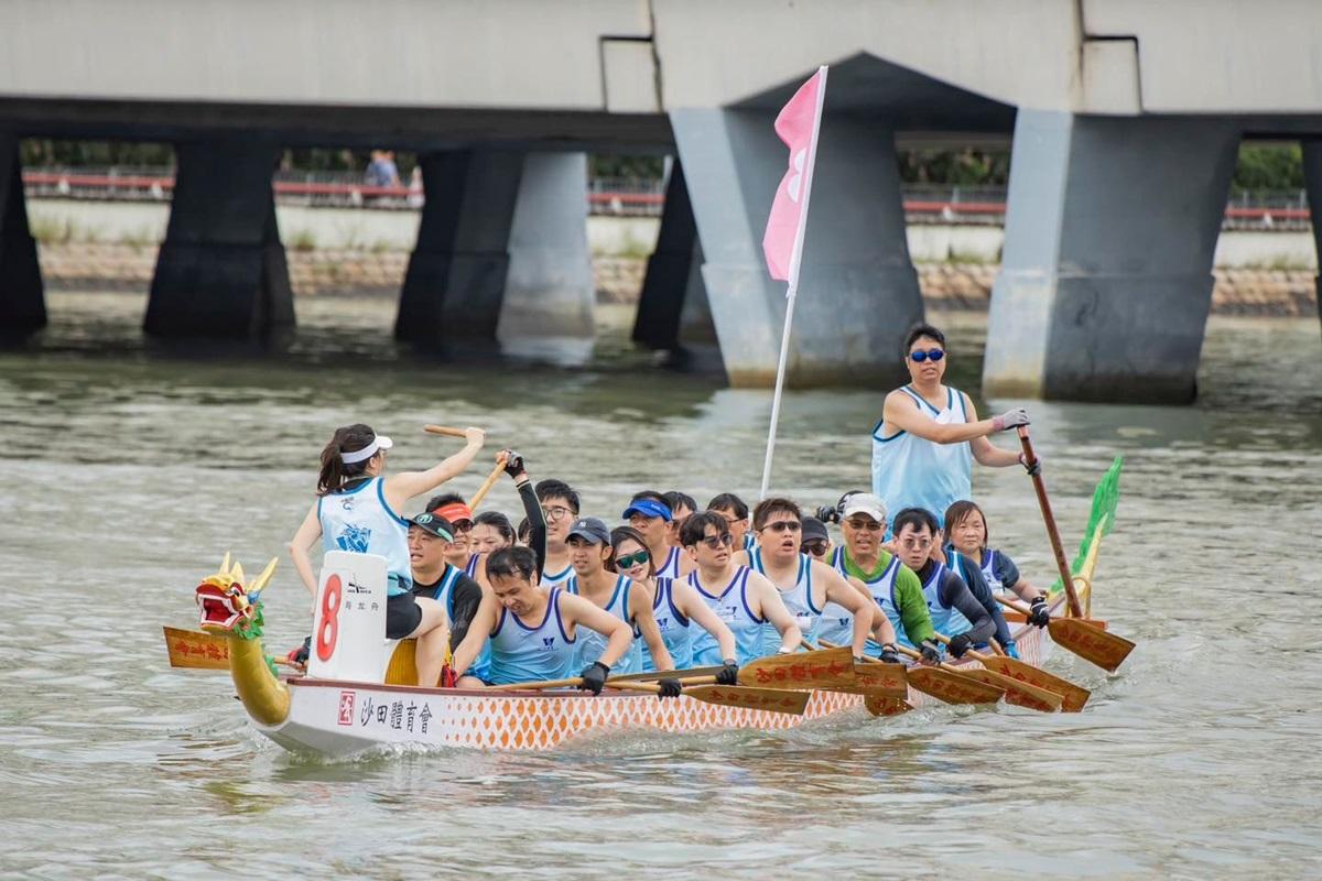 水務署署長黃恩諾(前排右三)今日化身龍舟隊隊長。(FB專頁「滴惜仔 Water Save Dave」圖片)