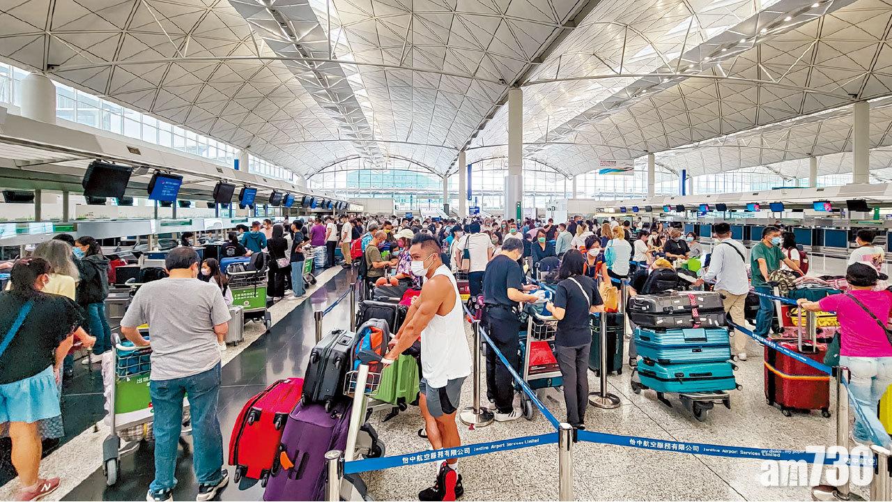 上月機場往英國的登記登機隊伍大排長龍。(資料圖片)