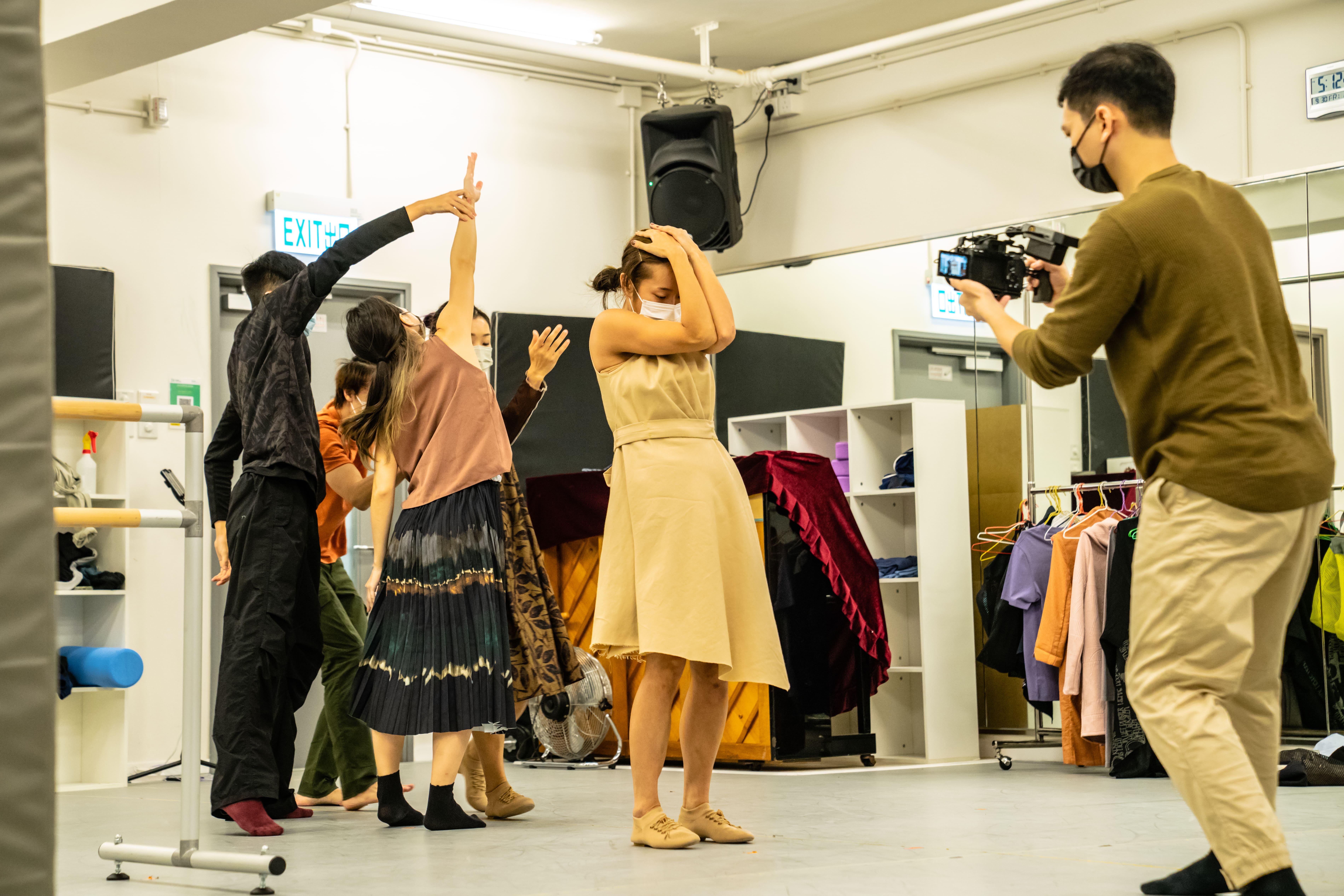 投入古蹟現場的排練前,舞者於排練室中模擬實地環境作綵排。