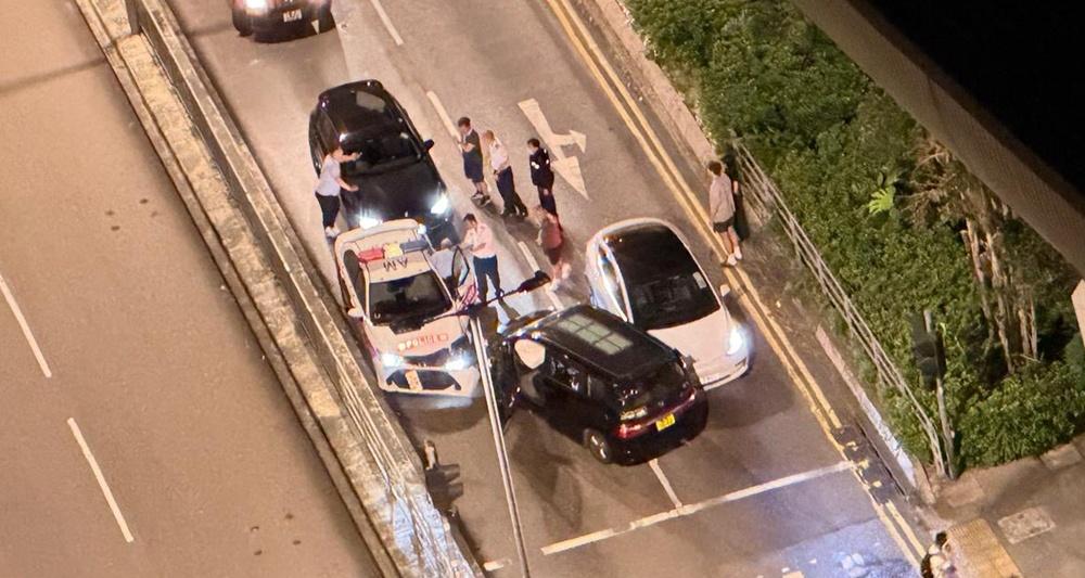 網上影片顯示,黑色七人車於插桅杆街右轉銀城街時,突然失控撞向對面行車線停在燈位前車輛。意外涉及4輛車,七人車上1名女乘客手部受傷,於現場經治理後拒絕送院。25歲男司機通過酒精呼氣測試,經初步調查,涉嫌危險駕駛被捕,現正被扣留調查。