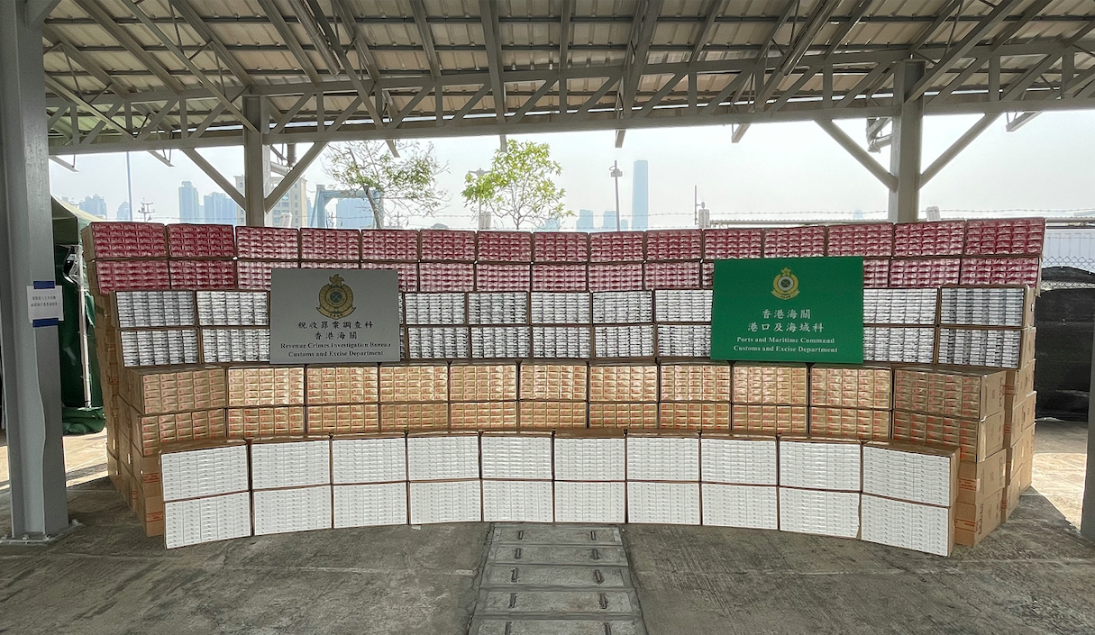 海關油麻地破億元私煙案,拘兩名本地男船員。