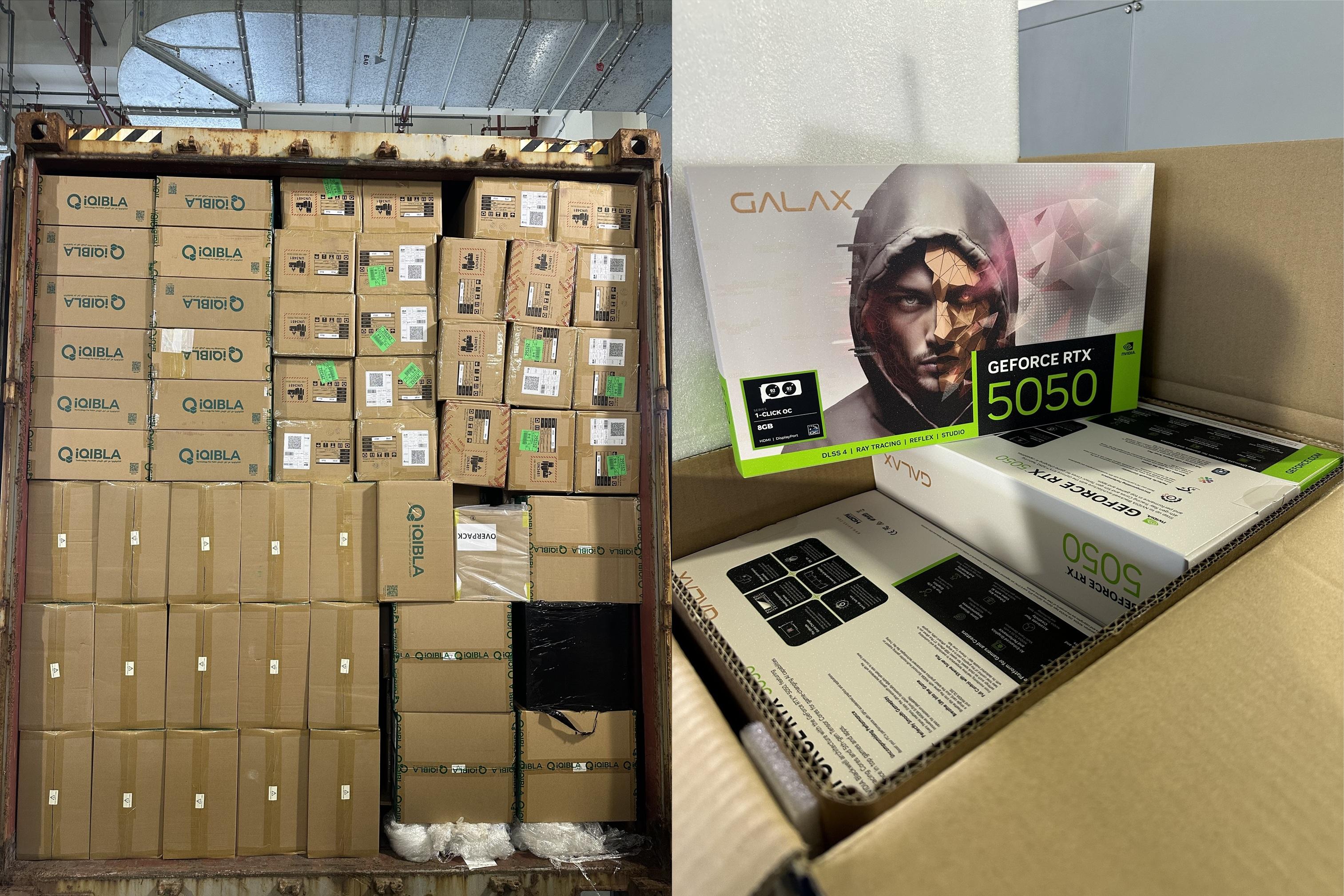 圖示涉案的貨櫃,除了於靠近貨櫃門放置報載的計數器及手錶,海關人員在該貨櫃內檢獲大批懷疑走私貨物。(政府新聞處圖片) 圖示檢獲的液晶顯示面板。(政府新聞處圖片) 圖示檢獲的醫療設備。(政府新聞處圖片) 圖示檢獲的電子產品。(政府新聞處圖片) 圖示檢獲的汽車零件。(政府新聞處圖片)
