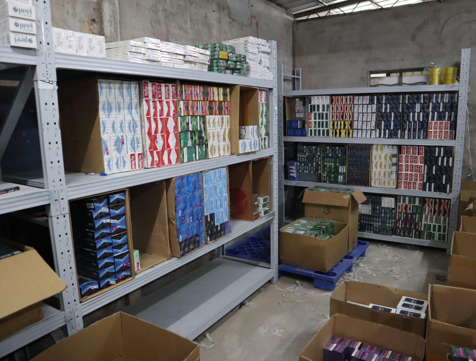 經搜查後,海關人員於一架泊於上址鐵皮場外的輕型貨車檢獲約15萬支私煙及在鐵皮場的貨倉內檢獲約100萬支私煙及10萬支另類吸煙產品。海關人員隨即再於該貨倉旁邊的另一鐵皮場貨倉檢獲約1.75萬公斤製成煙草。其後再押解被捕人到幾公里外另外一個鐵皮場貨倉內檢獲約21萬支私煙及6.6萬支另類吸煙產品。