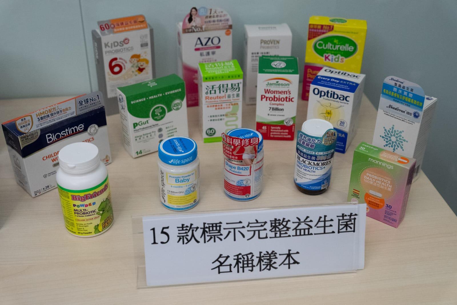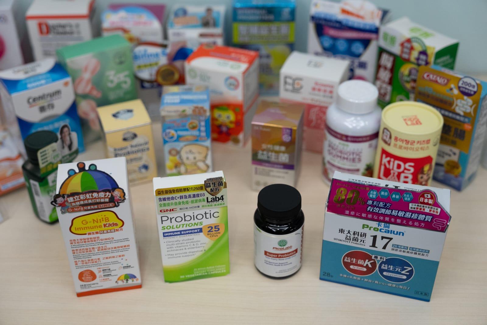 近年不少港人關注腸道健康而服食益生菌作保健作用,市面上不少益生菌更標榜能有效改善濕疹、敏感、提升免疫力、甚至提升女性私密部位健康。消委會參考外國的相關標準進行市場調查,於市面收集了40款聲稱能提供益生菌的膳食補充劑,當中有6款標示為女士專用;11款為兒童專用;另有23款普通益生菌樣本,其中9款標示少於12歲的兒童皆能食用,有11款則沒有標示適用年齡。樣本的售價由99元至788元,若以每日食用分量計算,則由5.3元至52.6元不等,價格相差近9倍。