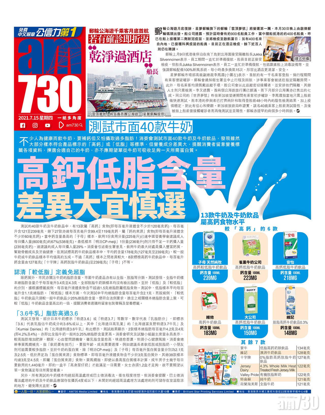 另外,所有測試的牛奶樣本均經超高溫處理或巴士德消毒法,衛生程度理想,但消委會提醒,巴士德消毒法處理的牛奶及牛奶飲品應儲存在攝氏4度或以下;未開封的經超高温處理方法處理的則可儲存在室温陰涼的地方,避免陽光直射。