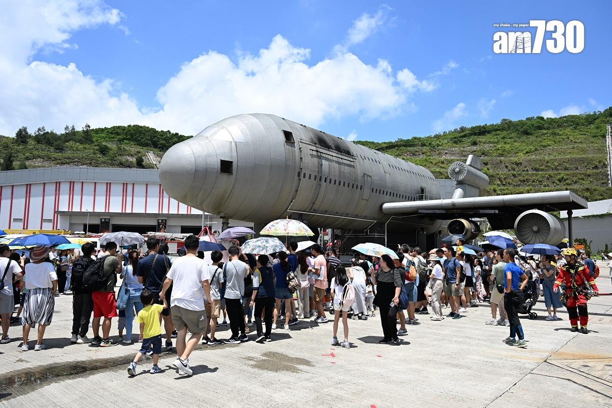 將軍澳消防及救護學院今日(6日)再次舉辦開放日,不少家長無懼炎熱帶同子女到場,參觀學院設施和觀看各式各樣示範表演,現場期間一度有驟雨,但都無阻入場市民的興致。