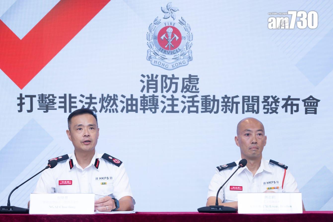 消防處署理助理處長(牌照及審批)倪楚豐表示,近來發現有不法分子為逃避執法,會由以往的大型儲存點,轉為分散到較小型和隱蔽的地方。此外,亦會利用運油車和普通貨車作掩飾。為加強打擊非法燃油轉注活動,消防處自上月起至今,展開代號為「油擊」的大型執法行動,在不同地區包括觀塘、油塘、將軍澳和昂船洲一帶等地執法和巡查。消防處聯不同部門,合共進行349次巡邏,搗破23個非法油站,截獲22萬公升柴油,市值約600萬元,共提出47宗檢控。
