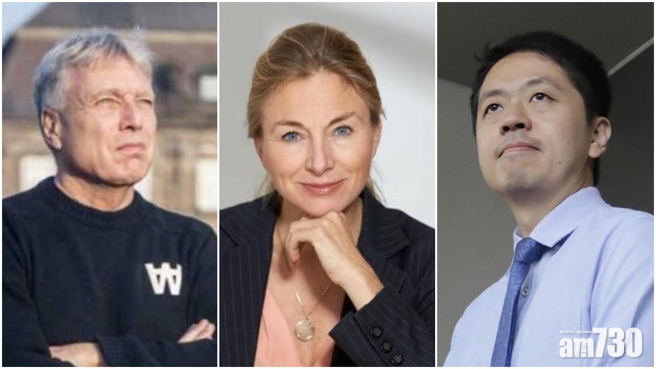 外媒指港府正研究起訴兩名丹麥議員艾巴伊克(左)及阿米茲波爾(中),指他們涉助許智峯流亡。(網上圖片)
