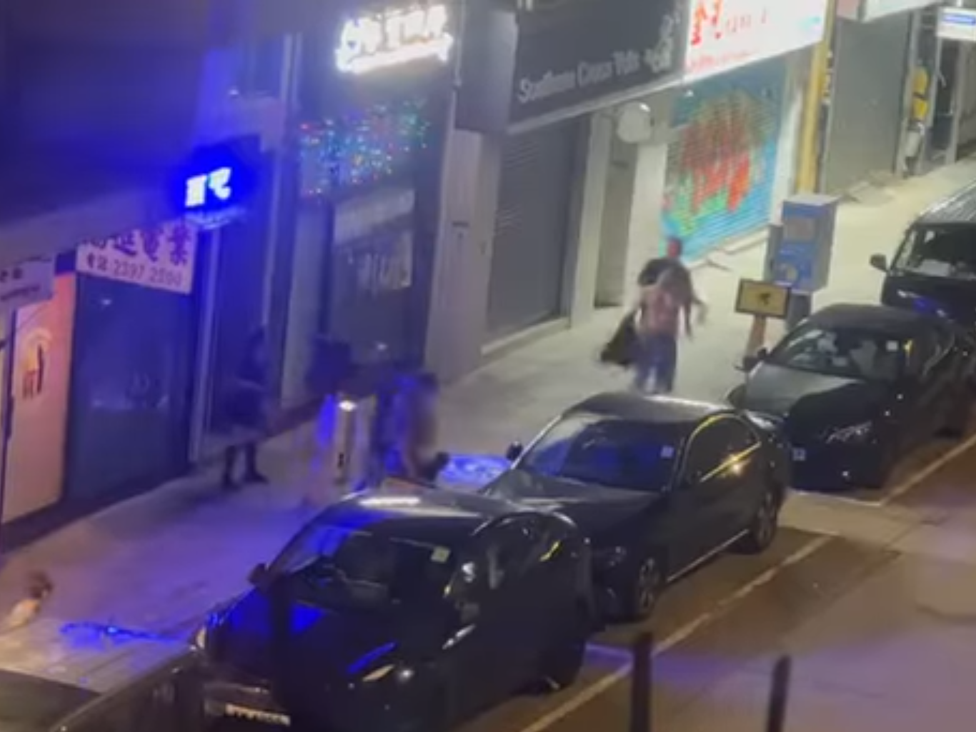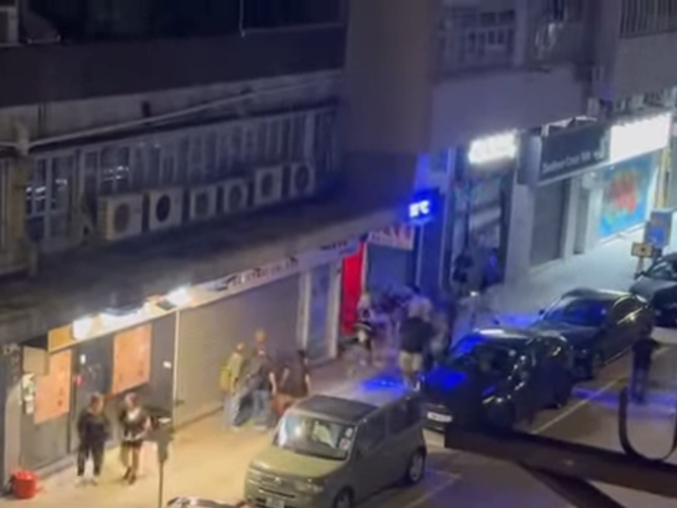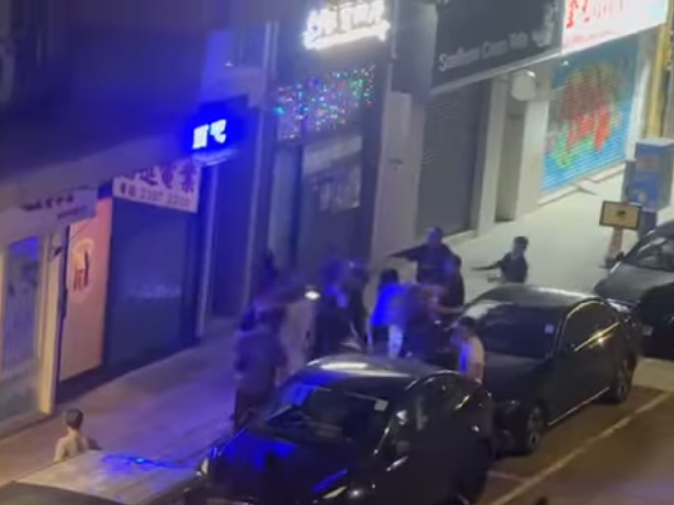 深水埗街頭混戰3男女被捕,警另追緝4名涉案大漢。(網上影片截圖)