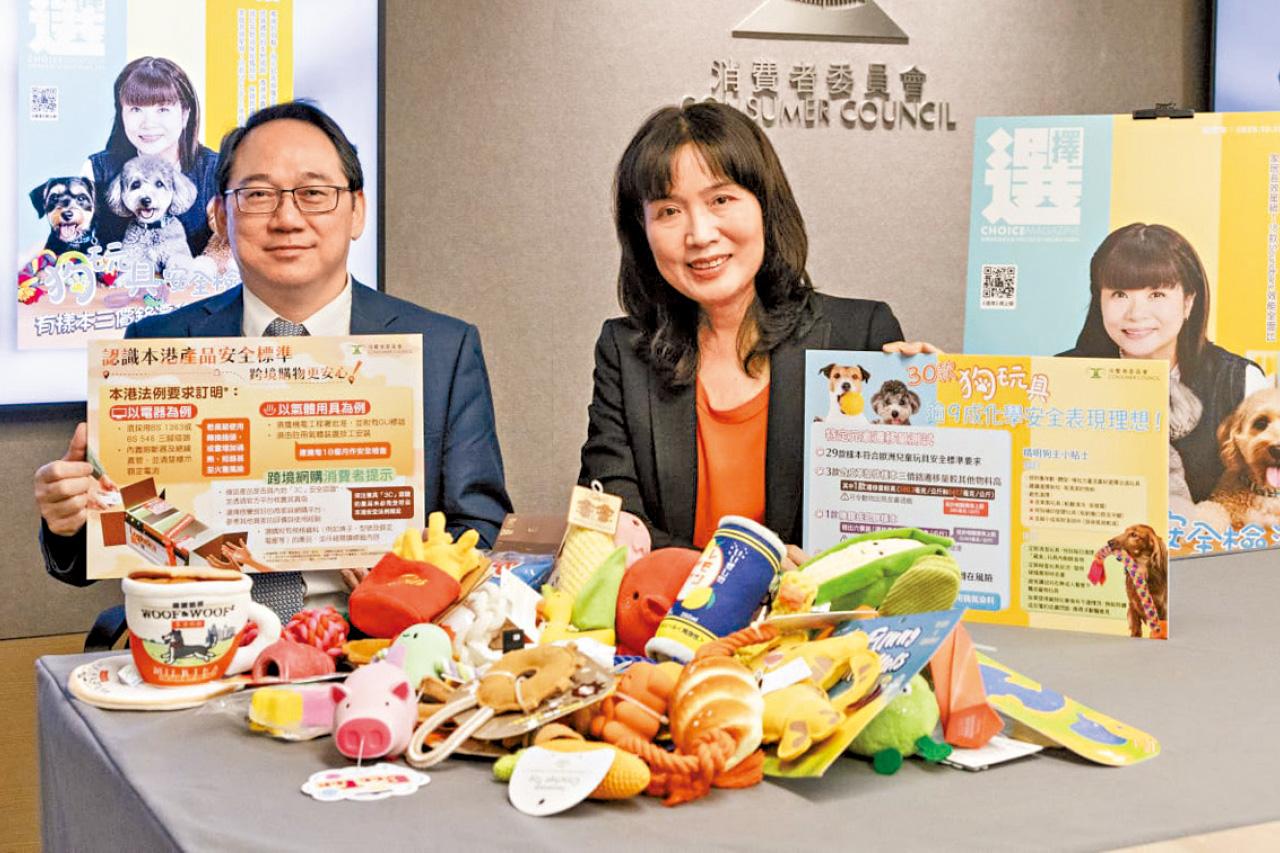 寵物市場有龐大潛力,各式配套物品應運而生。消委會測試30款狗玩具,全部樣本無檢出塑化劑、游離甲醛或禁用的偶氮染料,亦無發現可能造成損傷的尖角或銳邊。但一款樣本有部件的「三價鉻」遷移量高於歐洲標準,或致皮膚敏感。另有部分樣本檢出具潛在健康風險的特定元素,包括具致癌性的六價鉻及可於體內累積的鉛等。