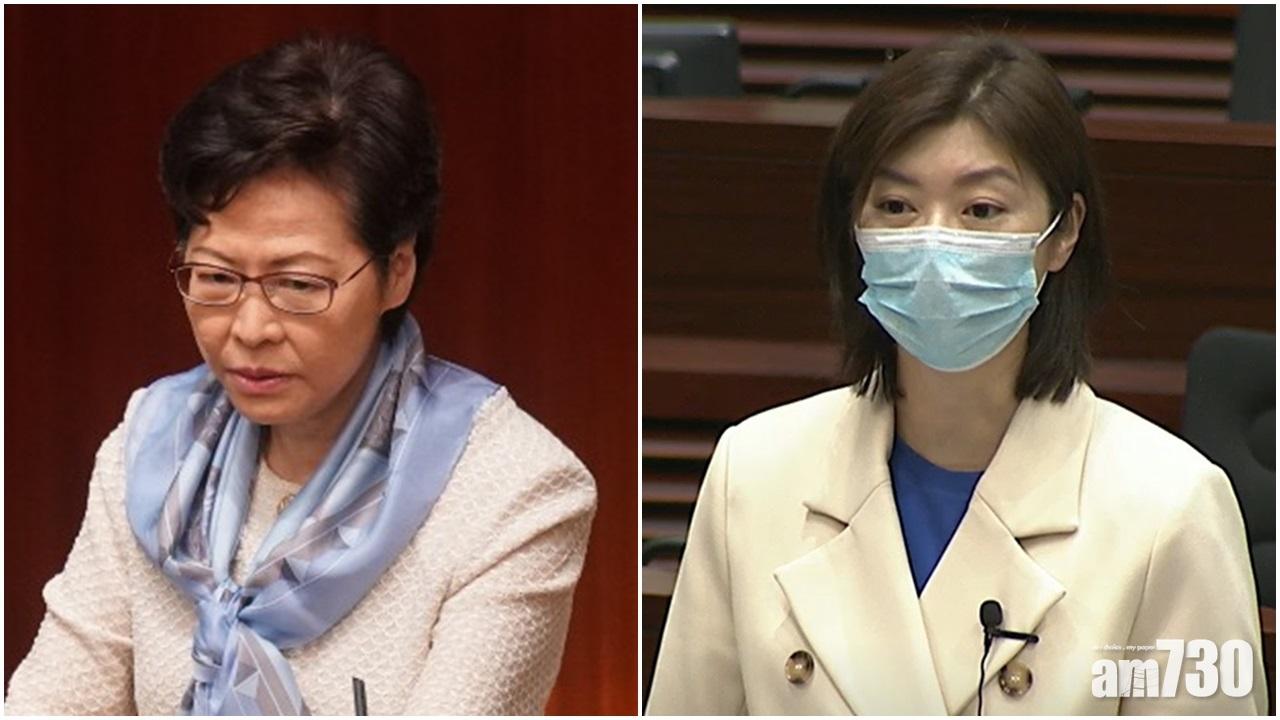 容海恩(右)關注「M+」博物館涉違《港區國安法》,林鄭月娥稱會保持警惕。(右為立法會影片截圖)