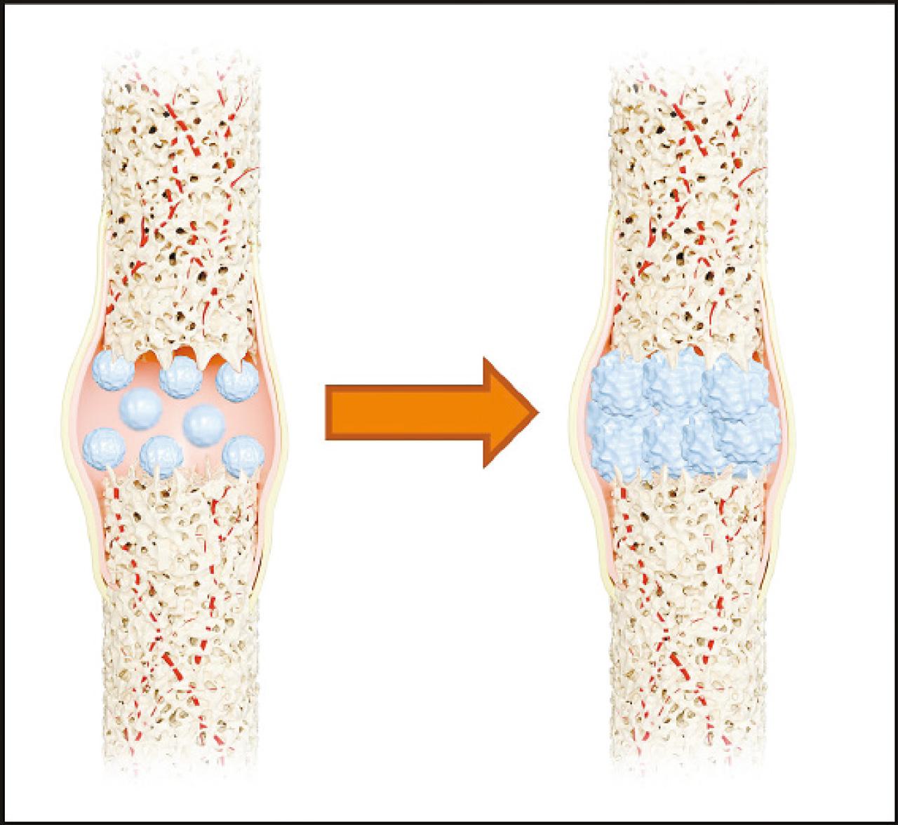 納米仿天然骨材料可以自動填充骨缺損空間,有利骨組織再生和癒合。